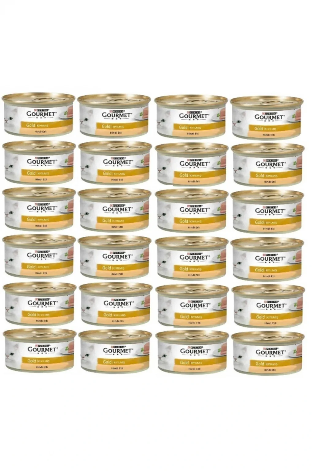 Purina Gourmet Gold Yaş Kedi Maması Kıyılmış Hindi Etli Konserve 85 gr - 24 Adet Yaş kedi maması kediler için, kıyılmış gerçek etle özenle hazırlanmış, pürüzsüz, hindi etli konserve yaş kedi maması.; Yaş Kedi Mamasının İçeriği; Et ve hayvansal türevler (% 4 hindi eti), mineraller, bitkisel türevler, çeşitli şekerler.; Yaş Kedi Mamasının Analizi; Protein % 10,50, yağ, % 7,00, ham selüloz % 0,05, nem % 77,50, inorganik madde % 3,20, A vitamini 900 IU, D3 vitamini 140 mg/kg, demir sülfat monohidrat 31,60 mg/kg, kalsiyum iyodat anhidre 0,40 mg/kg, bakır sülfat pentahidrat 3,50 mg/kg, mangan sülfat monohidrat 6,20 mg/kg, çinko sülfat monohidrat 51 mg/kg, koruyucular.; Beslenme Tavsiyesi; * 4 kg vücut ağırlığına kadar olan yetişkin kediler için, iki ayrı öğün olarak günde 4 kutu ile beslenmesi tavsiye edilmektedir.; * Hamile ve süt veren kediler için, yiyebildiği kadar verilmesi tavsiye edilmektedir.; * Taze içme suyunu daima mamanın yanında bulundurunuz.; * Oda sıcaklığında muhafaza ediniz.; Açıldıktan sonra buzdolabında muhafaza edilmeli ve maksimum 3 gün içersinde tüketilmelidir.