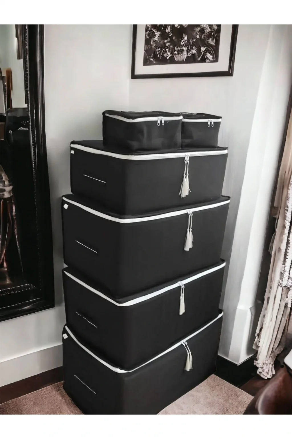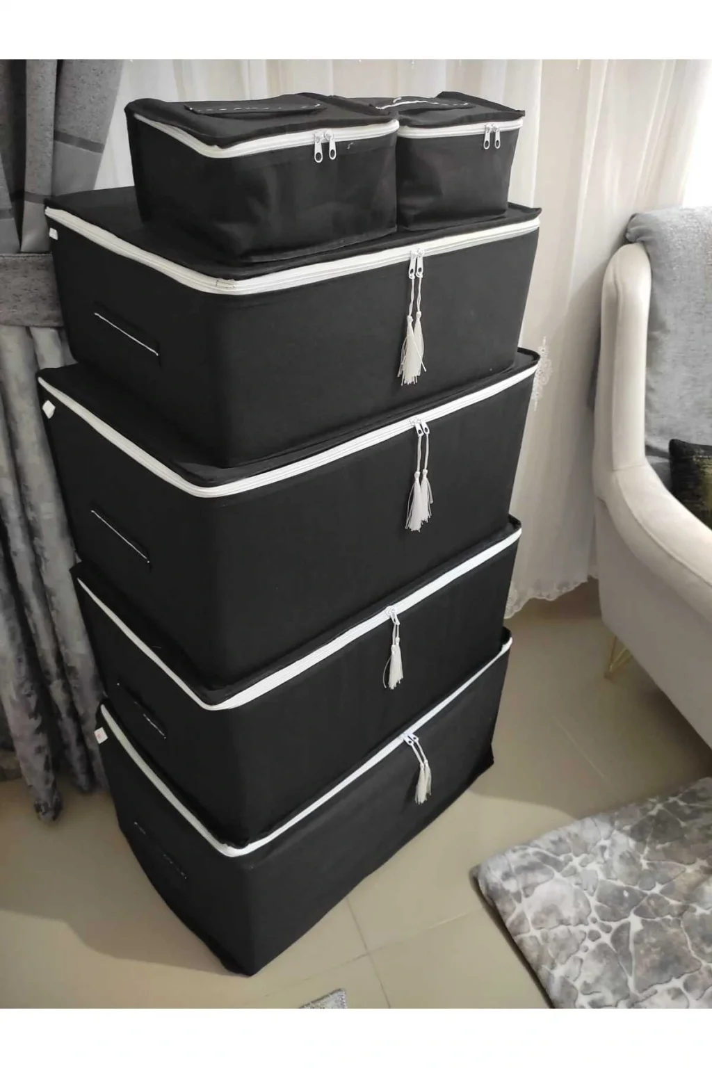 Tela materyali sayesinde dayanıklı ve uzun ömürlü kullanım sunar; Siyah renk seçeneğiyle şık ve modern bir görünüm sağlar; Püskül detayları ile estetik bir dokunuş ekler ve dekoratif bir amaca hizmet eder; 6'lı set halinde sunulan hurçlar, evinizdeki eşyalarınızı düzenli bir şekilde saklamanız için idealdir;