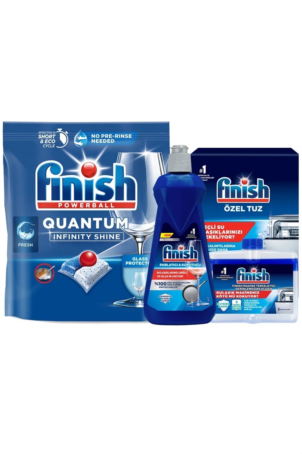 Finish Quantum Infinity Shine Bulaşık Deterjanı Tableti, her yıkamada derin temizlik ve mükemmel parlaklık sağlar.