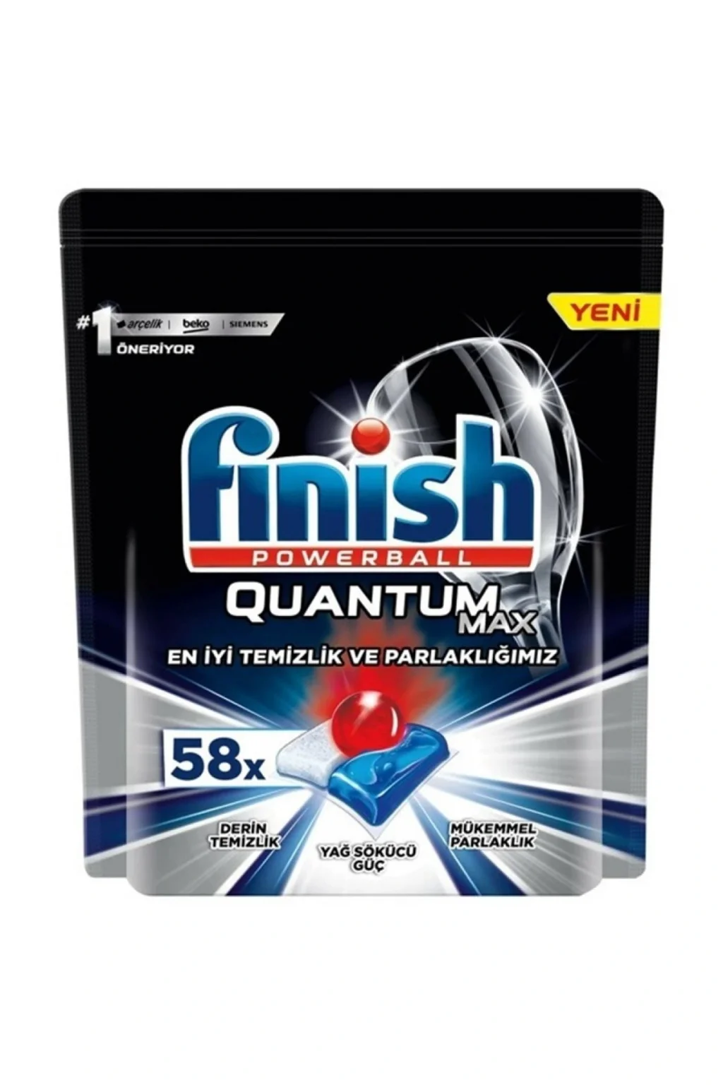 Yeni ve güçlendirilmiş formülü ile finish quantum karşısına çıkan tüm zorlu kirlerin üstesinden gelir. 3 bölmeli teknolojisi, içeriğindeki toz deterjan ile zorlu kirleri yok eder, jel ile yağları söker atar. Powerball son dokunuşu yaparak tabletin gücüne güç katar ve mükemmel parlaklık sağlar.Şimdi 14x süper güçlü formülü; tek yıkamada zorlu kirleri çıkarma, cam koruma ve mükemmel parlaklık sağlama özellikleriyle finish’in bugüne kadarki en iyisi!