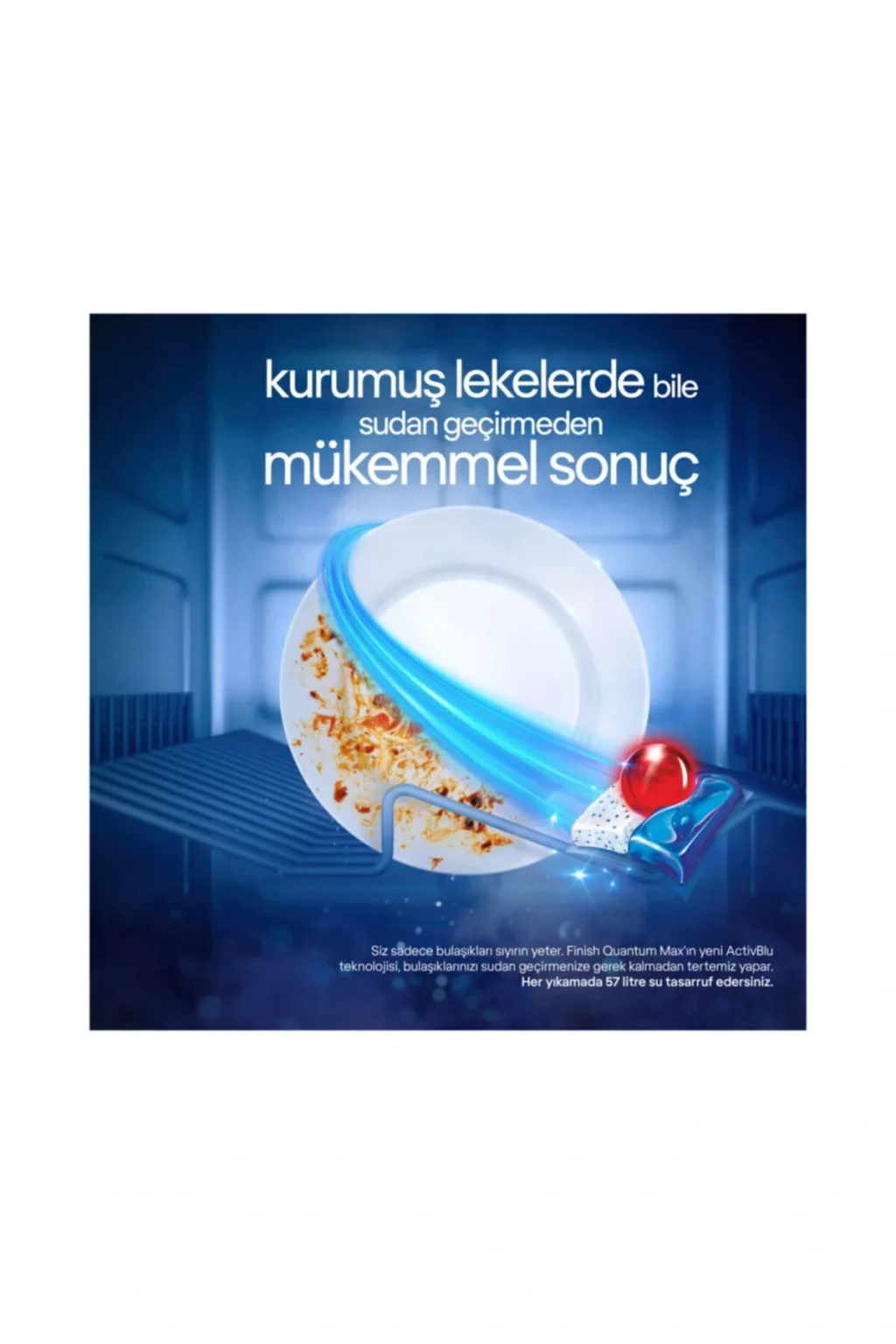Şimdiye kadarki en güçlü finish: Yeni finish quantum max. ; Yeni formülüyle içindeki toz deterjan kurumuş lekeleri bile sudan geçirmeden çıkarır. ; Power jel yağları söker atar , likit powerball mükemmel parlaklık sağlar. ; 3 bölmeli yeni kapsül teknolojisiyle, yeni finish quantum max kolayca çözünür. ; Üstelik daha az kimyasal içerir.* Maksimum güç, mükemmel parlaklık. ; *finish quantum ürününe göre.;