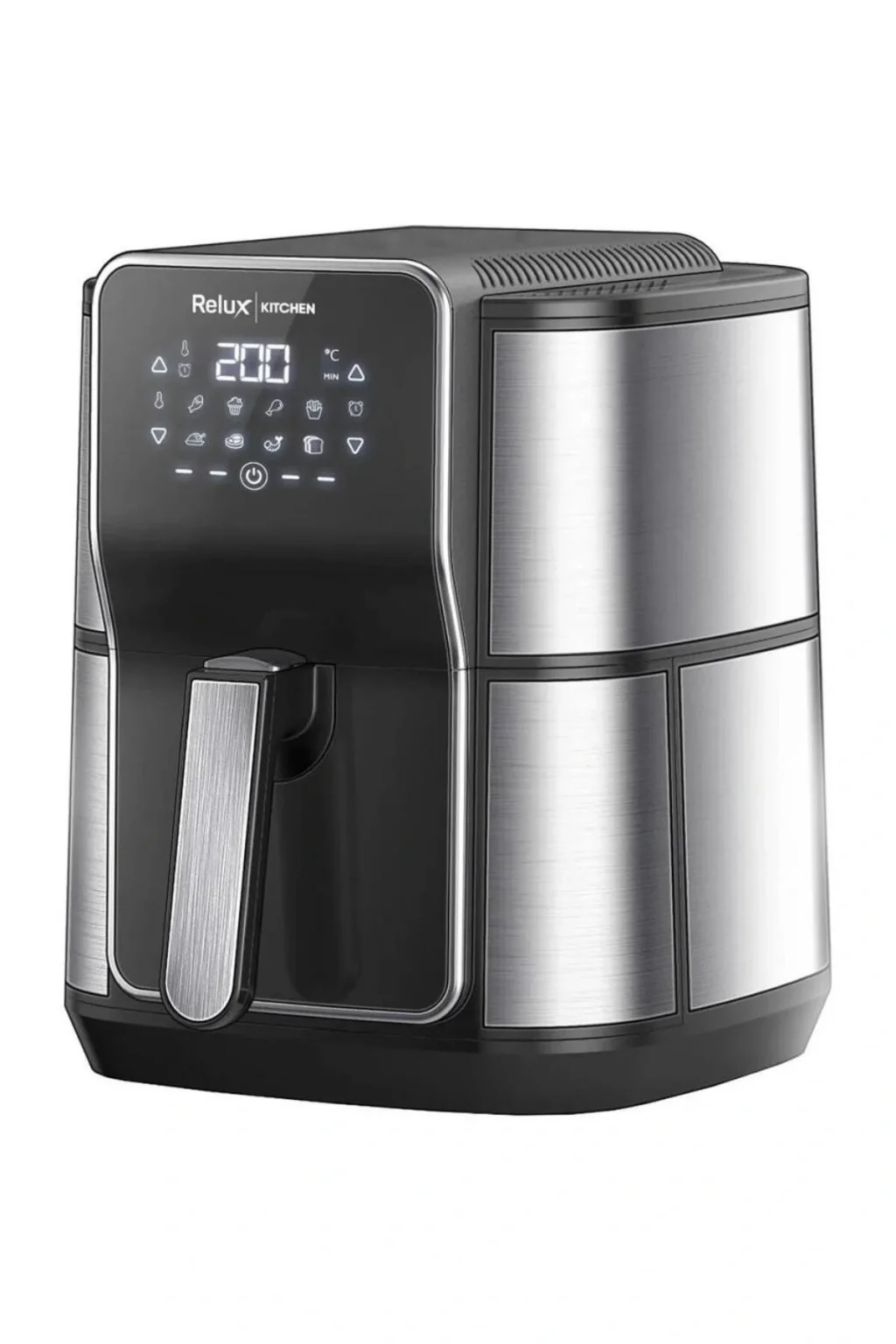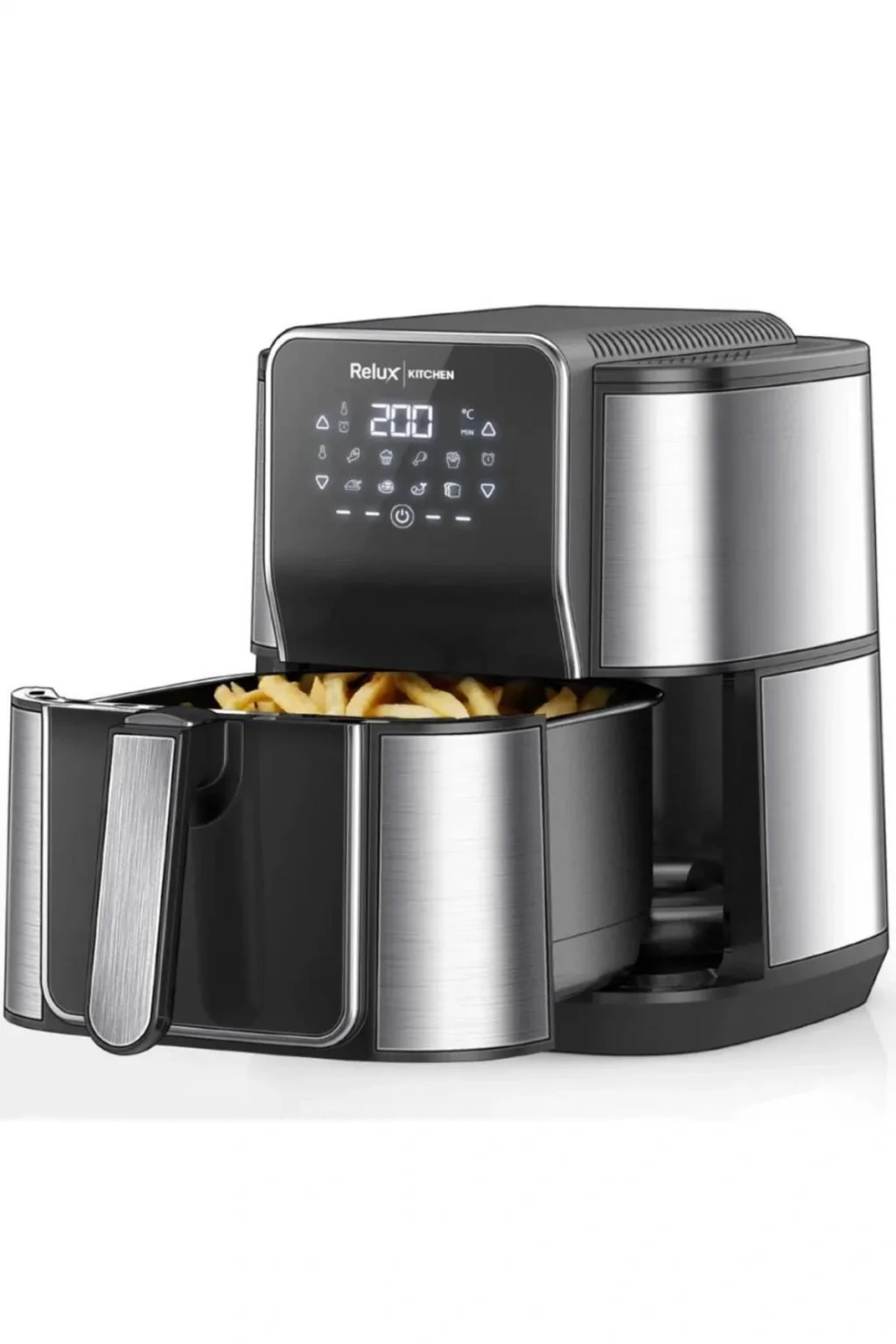 Genel Özellikler Garanti Süresi: 2 Yıl Relux Türkiye Garantili Orijinal Ürün Garantisi: Satışını yaptığımız bütün ürünler sıfır ambalajında orijinal garantili faturalı ürünlerdir.; Kargo: Ücretsiz Kurulum: Yetkili servis kurulumu gerektirmez, ürünü kendiniz açıp kullanmaya başlayabilirsiniz, garanti fatura tarihi itibariyle başlamaktadır.; Guçlu Performans Dokunmatik Ekran 7 Litre Kapasite Ayarlanabilir Pişirme Sıcaklığı Ayarlanabilir Pişirme Suresi 8 Farklı Hazır Pişirme Programı LFGB ve FDA Uygunluğu Otomatik Kapanma BPA İçermez Yuksek Sıcaklık Kontrolu Guç: 1800W Sepet Kapasitesi: 5,5 L Hazne Kapasitesi: 7 L Boyutlar: 41,4 x 30,7 x 36,3 cm Ağırlık: 6,30kg Sıcaklık: 80-200ºC Zamanlayıcı: 1-60dk 8 Farklı Pişirme Programı Tavuk Kanadı Pişirme Programı Deniz Mahsulleri Pişirme Programı Tavuk Pişirme Programı Balık Pişirme Programı Ekmek Kızartma Programı Patates KızartmaProgramı Biftek Pişirme Kek Pişirme Programı