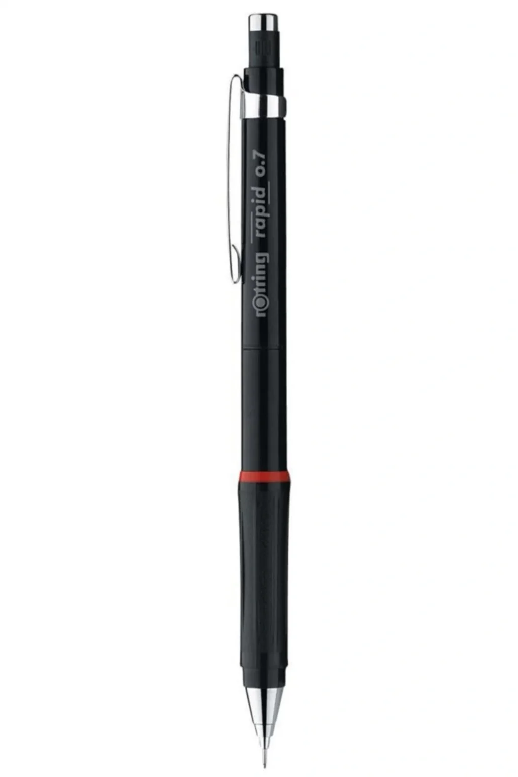 Rotring Rapid Versatil Kalem (Mekanik Kurşun Kalem) Siyah 0.7 Mm 1904841 Rapid; yoğun çalışan profesyoneller ve öğrenciler için ideal *Yazım veya çizim sırasında elde oluşan yorgunluğu minimuma indiren ergonomik tutma yeri ve cebinizi istenmeyen yırtılmalara karşı koruyan gizli uç mekanizması * Çevrilerek çıkan geniş tepe silgisi * 0.5 ve0i7 mm uç kalınlığı alternatifi rOtring çizim araçları, bireylerin aktif olarak kendi yaşam tarzlarını yarattığı her yerde bulunabilir. Yani, düşüncelerinin ve vizyonlarının gücünü anlayıp ifade eden insanların ellerinde... Bu yaratma, anlama ve ifade etme ihtiyacı her rOtring çizim aracının geliştirilmesi sürecinin ayrılmaz bir parçasıdır. rOtring, profesyonel eskiz ressamlarından, öğrencilere ve normal bireylere kadar teknik çizim ve tasarım alanında her uygulama için ideal çözüm sunan kapsamlı ürün sistemleri sağlar. Teknoloji, ergonomi ve tasarımın mükemmelliği, bir yandan çizimler için ideal bir dünya yaratırken diğer yandan da fikirlerin ve vizyonların mükemmel şekilde ifade edilmesini sağlar. rotring rapidograph; rapidograph; rotring kalem; rotring kalemler; kalem; rapidograph kalem