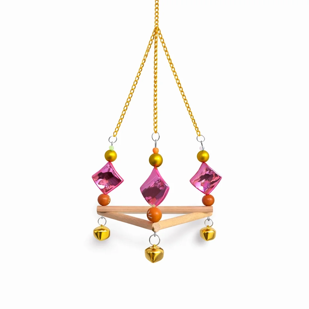 Renkli Boncuklu Ve Üçgen Zilli Papağan Salıncağı 15-24 cm - SF-PPGNSLNCK-1016 - - Renkli Boncuklu Ve Üçgen Zilli Papağan Salıncağı 15-24 cm Üçgen zilli papağan salıncağıdır. Salıncağın alt kısmında üç adet tünek mevcuttur. Renkli çiçek aksesuarları say