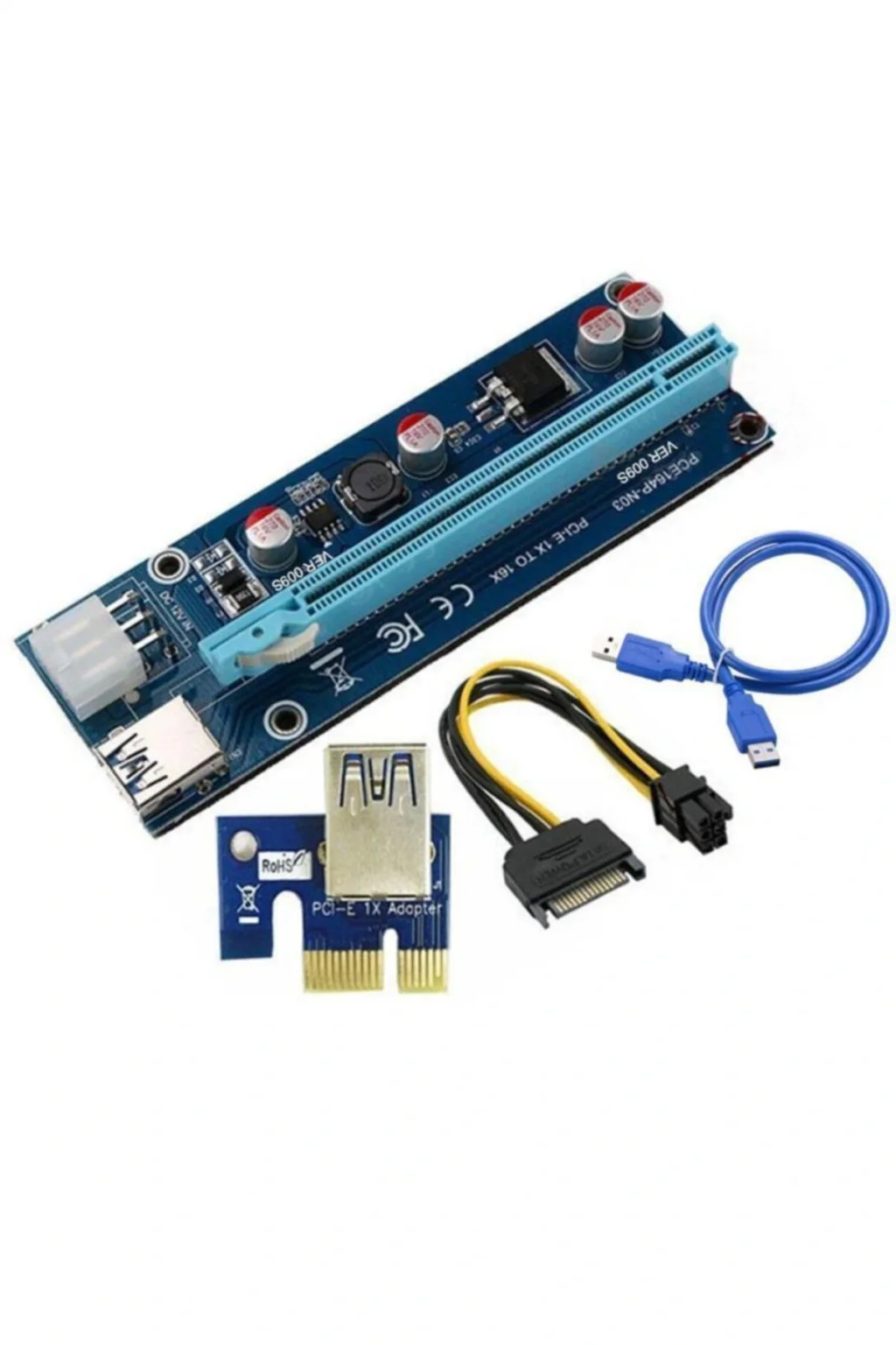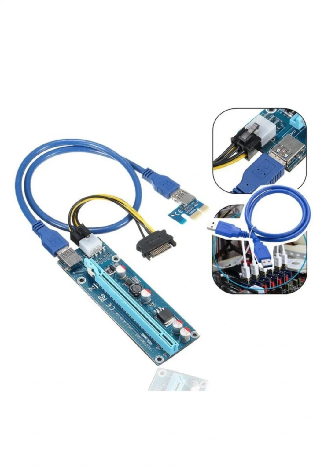 riser kart ver:009S 60cm USB 3.0 kablo genişletici kablo olarak, üstün kalite ve süper hız kullanma. 3x FP katı kapasitörlerile grafik güç kaynağı daha kararlı ve güvenli hale getirir. sata power ile 6pin güç kablosu, daha güçlü ve anakart yükünü azaltmak. Daha iyi bağlantı ve uzun ömür için kontaklar. Anakartın 1x,4x,8x,16x PCI-E yuvası ile uyumludur. Sürücüye ihtiyaç yok; paket içeriği: 1 adet riser kart 1 adet usb 3.0 e/e/ kablo 1 adet pcı usb kart 1 adeı 6 pin to sata power kablo.