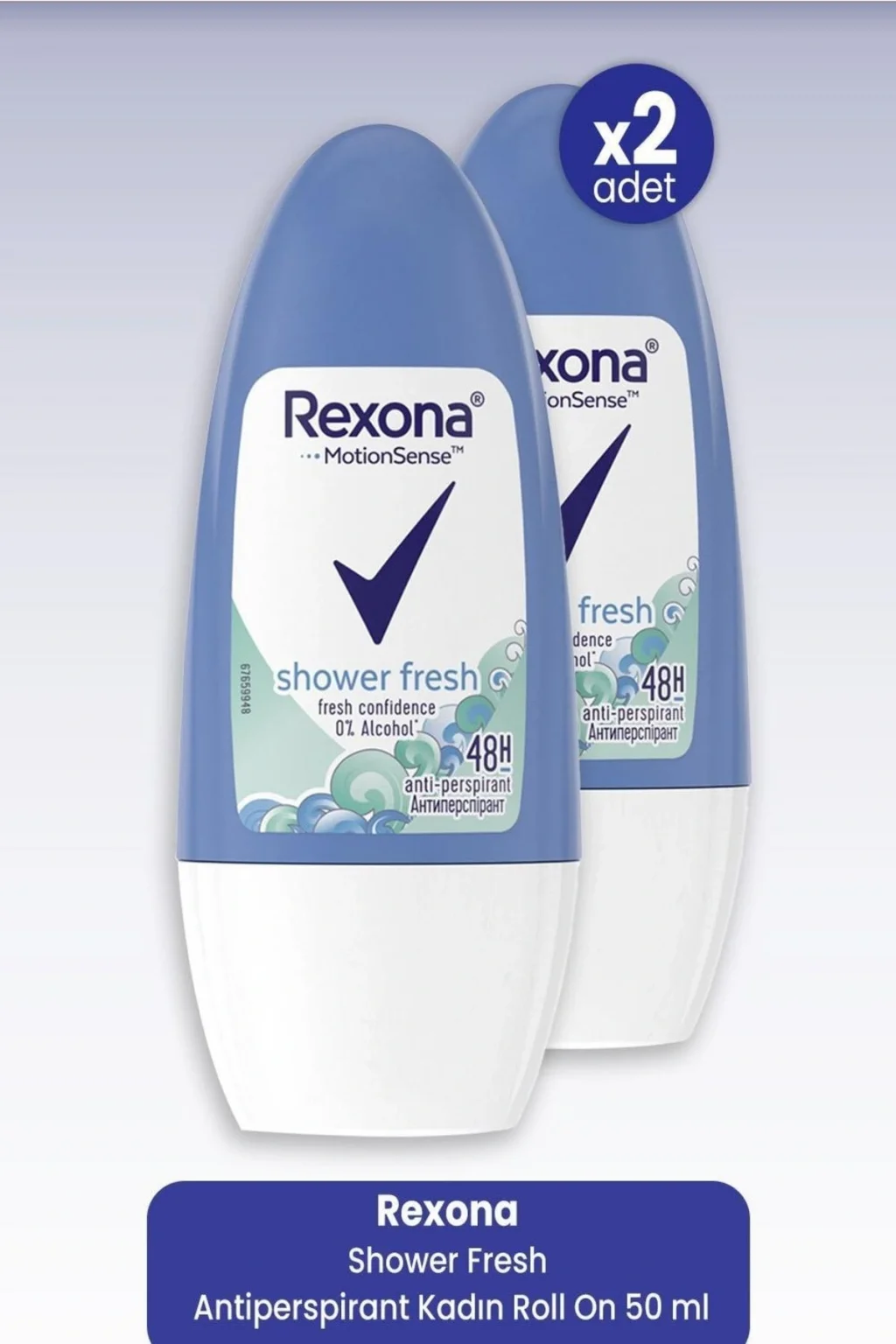Rexona Shower Fresh Antiperspirant Kadın Roll On 50 ml x 2 Adet, Yoğun günlerinizde fazla hareket etmekten çekiniyor, ter kokusuyla mücadele etmekte zorlanıyor musunuz? Rexona Shower Fresh Kadın Antiperspirant Roll On Deodorant 50 ml ile artık özgürce hareket etmekten korkmayın! Rexona Shower Fresh Kadın Antiperspirant Roll On Deodorant, gün boyu kuruluk ve ferahlık hissi için ihtiyaç duyduğunuz korumayı sağlar.; ; Kadınlar için özel olarak geliştirilen bu deodorant, ter ve kötü kokuya karşı 48 saat koruma sağlayarak en hareketli günlerinizde bile ferahlık hissini korumanıza yardımcı olur.; ; Devrim niteliğindeki Motionsense® teknolojisi ile geliştirilen Rexona Shower Fresh Kadın Antiperspirant Roll On Deodorant, siz hareket ettikçe patlayan mikro kapsülleri ile gün boyu hoş kokuyu tazeler.; ; Deodorant markaları içinde öne çıkan Rexona’nın Motion Sense Kadın Roll On Deodorant Shower Fresh Anti-Perspirant’ı, narin meyvelerle harmanlanmış gül ve yasemin gibi çiçeksi kokularla canlandırıcı ve ferahlatıcı bir his verir.; ; Böylece Rexona’nın en iyi roll on deodorantları arasındaki bu ürün sayesinde en hareketli günlerinizde bile gün boyu duştan yeni çıkmış gibi tertemiz kokarsınız.; ; Kolay kullanım sağlayan roll on kadın deodorant, gün boyu sizinle birlikte hareket ederek yoğun temponuzu güvenle sürdürmenize destek olur.; ; Rexona güvenceli en iyi deodorant, dermatolojik olarak test edilmiştir ve alkol içermez.; ; Her gün özgürce hareket etmeniz için geliştirilen Rexona Shower Fresh Kadın Antiperspirant Roll On Deodorant ile sınırlarınızı aşmaktan korkmayın! Rexona, sizi asla yarı yolda bırakmaz.; ; Kullanım: Roll on deodorant sadece koltuk altına uygulanır.; ; Tahriş olmuş cilde uygulanmaz.; ; Tahriş durumunda kullanıma devam etmeyin.; ; İçindekiler: Aqua, Aluminum Chlorohydrate, Steareth-2,Helianthus Annuus Seed Oil, Parfum, Steareth-20, Silica Dimethyl Silylate, Disodium EDTA, Pentaerythrityl Tetra-di-t-butyl Hydroxyhydrocinnamate, Caprylic/Capric Triglyceride, Gelatin Crosspolymer, Cellulose Gum, Sodium Benzoate, Hydrated Silica, Potassium Lactate, Alpha-Isomethyl Ionone, Benzyl Alcohol, Benzyl Salicylate, Citronellol, Hexyl Cinnamal, Limonene, Linaloo;
