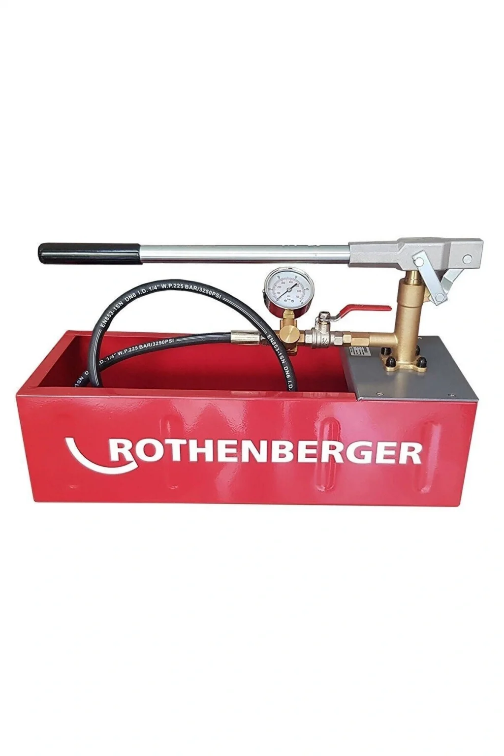 Rothenberger RP 40 ECO 40 bar’a kadar manuel test pompası Sıhhi tesisat ve kalorifer tesisatı içerisindeki küçük boru sistemlerinin ve kapların sızdırmazlık testi için; Tek valf sistemi ile basit kullanma; Küçük boyutlar ile dar yerler için ideal; Çelik örgülü test hortumu nedeniyle, hortumun genişlemesi ile basınç değişme hatası olmaz; Depo hacmi: 11 litre; Test ve basınç aralığı: 0-40 bar 16 ml emiş;