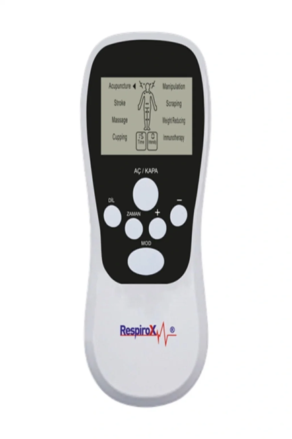 Respirox RTC-01 Elektrikli Tens Aleti 2 Kanal ; Pil ile Kullanım ; Zaman Ayarlı ; LCD Ekran ; 15 Güç Seviyesi ; Hafif ve Taşınabilir ; 8 Mod ; ;