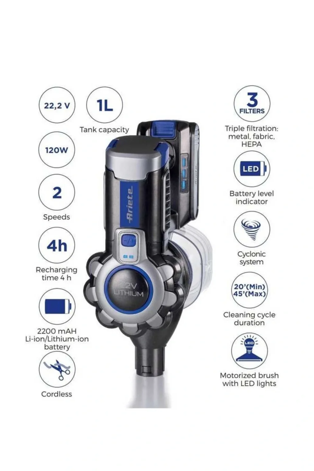 Duvara asma aparatı sayesinde, şarjlı dikey süpürgeyi kolayca saklayabilir ve kullanmadığınız zamanlarda yerden tasarruf edebilirsiniz; 2 yıl süreyle resmi distribütör garantisi altında güvenle kullanabileceğiniz bir ürün sunuyoruz; Şarjlı yapısı ile kablo karmaşasına son vererek, özgürce hareket etme imkanı sağlar; Ses seviyesi 71 dba ile 80 dba arasında değişen bu cihaz, etkili temizlik performansını sessiz bir şekilde gerçekleştirir; El süpürgesi olarak da kullanılabilme özelliği sayesinde, dar alanlarda ve köşelerde kolayca temizlik yapabilirsiniz;