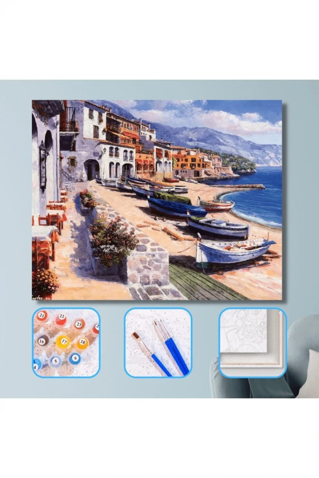 Sayılarla Boyama Seti Kasnaklı Ege Sahili 60 X 75 Cm Sayılarla Boyama Seti Kasnaklı Ege Sahili 60 X 75 Cm, hobi ürünümüzü kendi başınıza, ailenizden biriyle ve ya arkadaşlarınızla beraber ortaya çıkarabilirsiniz. Sizlere renkli dünyaların kapılarını açıyoruz! Sayılarla Boyama Setleri ile sanatı keşfedin ve içsel yaratıcılığınızı serbest bırakın. Başlangıçta, sayılarla boyama, sayılarla boyama seti, tuval boyama, hobi seti, tuval seti, numaralı boyama, sayılar boyama, sayılı boyama, numaralarla boyama, tablo boyama ve daha fazlasını içeren geniş koleksiyonumuzla, sanat tutkunlarına bir cennet sunuyoruz. Kolaylığın ve Keyfin Buluştuğu Nokta! İlk olarak, sayılarla boyama setlerimiz, numaralarla boyama yapmayı kolaylaştırır ve keyifli hale getirir. Özel tasarım sayfalarımızda, her adımda hangi rengi kullanmanız gerektiğini gösteren numaralarla işaretlenmiş resimler bulacaksınız. Böylece tuval seti ile sanat eserleri yaratmak sadece eğlenceli değil, aynı zamanda sonuçlar da muhteşem olur. Her numara, hayalinizdeki resmi yaratmanıza rehberlik eder.Ayrıca, kaliteli malzemelerle donattığımız sayılarla boyama setlerimiz, tuval boyama deneyiminizi daha da özel kılar. Boya, fırça ve tuvalde en yüksek kaliteyi sunarız. Bu sayede her resimde gerçek bir sanat eseri yaratma şansınız vardır. Renklerin büyüsüne kapılın ve tuval üzerinde hayal gücünüzü serbest bırakın.Bunun yanı sıra, çocuklar ve yetişkinler için uygun seçeneklerimizle her yaşa hitap ederiz. Çocuklar için basit ve eğlenceli tasarımlarımızla minik sanatçıları destekleriz. Yetişkinler için ise daha karmaşık ve detaylı resimlerle sanatseverlere meydan okuruz. Sitemizdeki geniş koleksiyonumuz, herkesin ilgisini çekecek özel tasarımlar içerir. Ek olarak, sevdiklerinize özel bir hediye mi arıyorsunuz? Sayılarla boyama setleri harika bir hediye seçeneği sunar. Özel günlerde veya sürprizlerde sevdiklerinizi mutlu etmek için en iyi seçeneklerden biridir. Sanatsal Serüveninizi Başlatın! Sonuç olarak, sitemizi ziyaret edin ve kendi sanatsal yolculuğunuza adım atın. Sayılarla boyama, sayılarla boyama seti, tuval boyama, hobi seti ve diğer anahtar kelimelerle aradığınız ürünü bulursunuz. Eşsiz resimlerinizi yaratırken huzuru ve mutluluğu deneyimleyin. İçsel sanatçınızı keşfedin ve her resimdeki güzelliği yakalayın!Satın aldığınız setimizin içinde; Tuval şasesine gerili tuval kanvası,; 3 adet farklı boyutta fırçası (küçük, büyük, orta),; İhtiyacınız olacak tüm su bazlı akrilik boyaları,; Kullanım kılavuzu, .; Resmin ortaya çıktığında görünecek halinin küçük bir ön izlemesi ile birlikte sizlere ücretsiz kargolanmaktadır.; Tek yapmanız gereken beğendiğiniz ürünü ortaya çıkarmak için tuval üzerinde numaralandırılmış bölgelere karşılık gelen yerleri ona uygun boya ile boyamak.Sayılarla boyama setinizin boya ve fırça ürünleri size tam yetecek şekilde gönderilmiştir.Boyama işlemi bittiği zaman dilerseniz evinizin bir köşesine asabilir veya arkadaşlarınızın özel günlerinde onlara hediye edebilirsiniz.