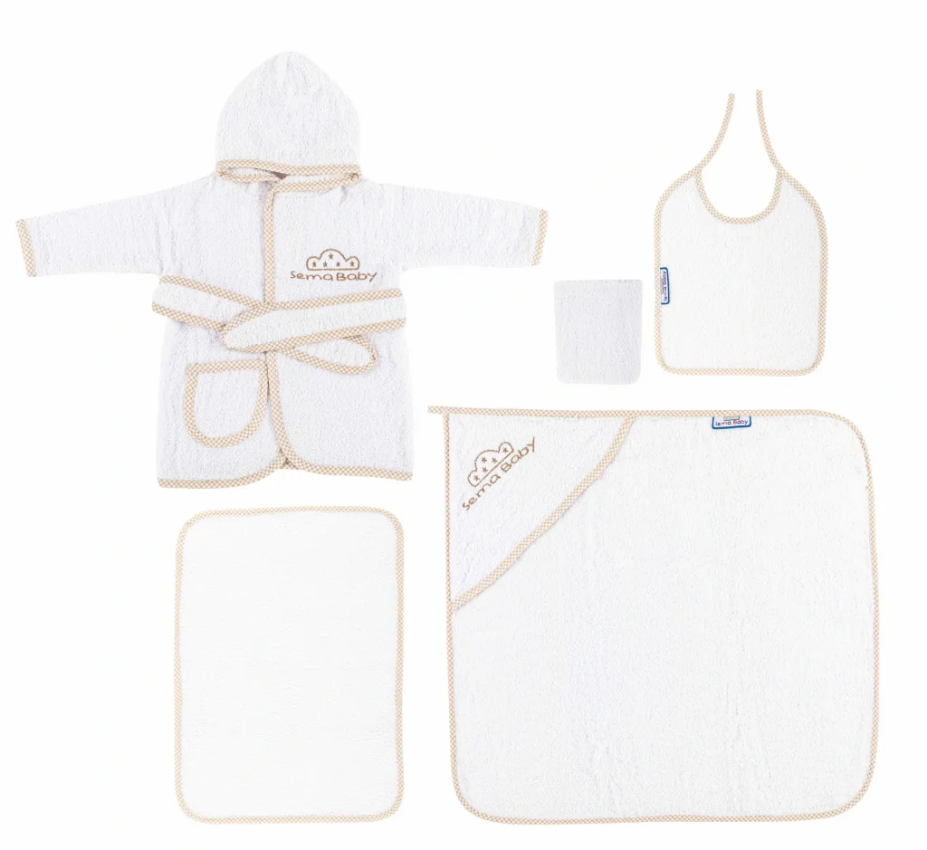 Sema Baby 5 Parça Bebek Bornoz Seti - Ekru