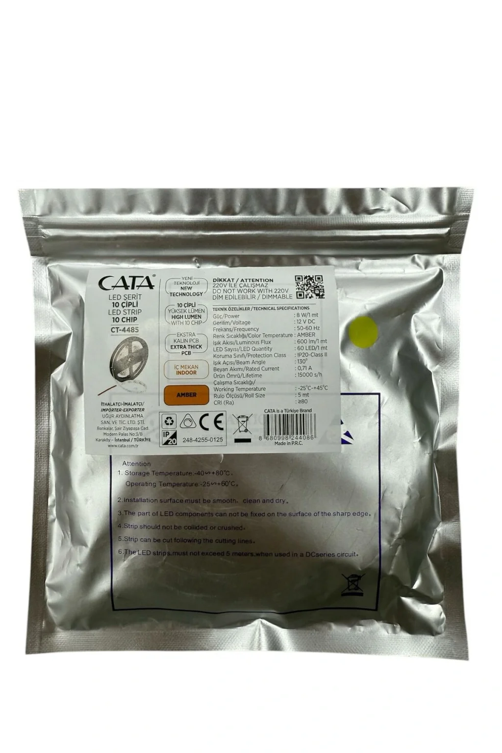 ŞERİT LED İÇ MEKAN 10 ÇİPLİ AMBER CATA CT-4485
