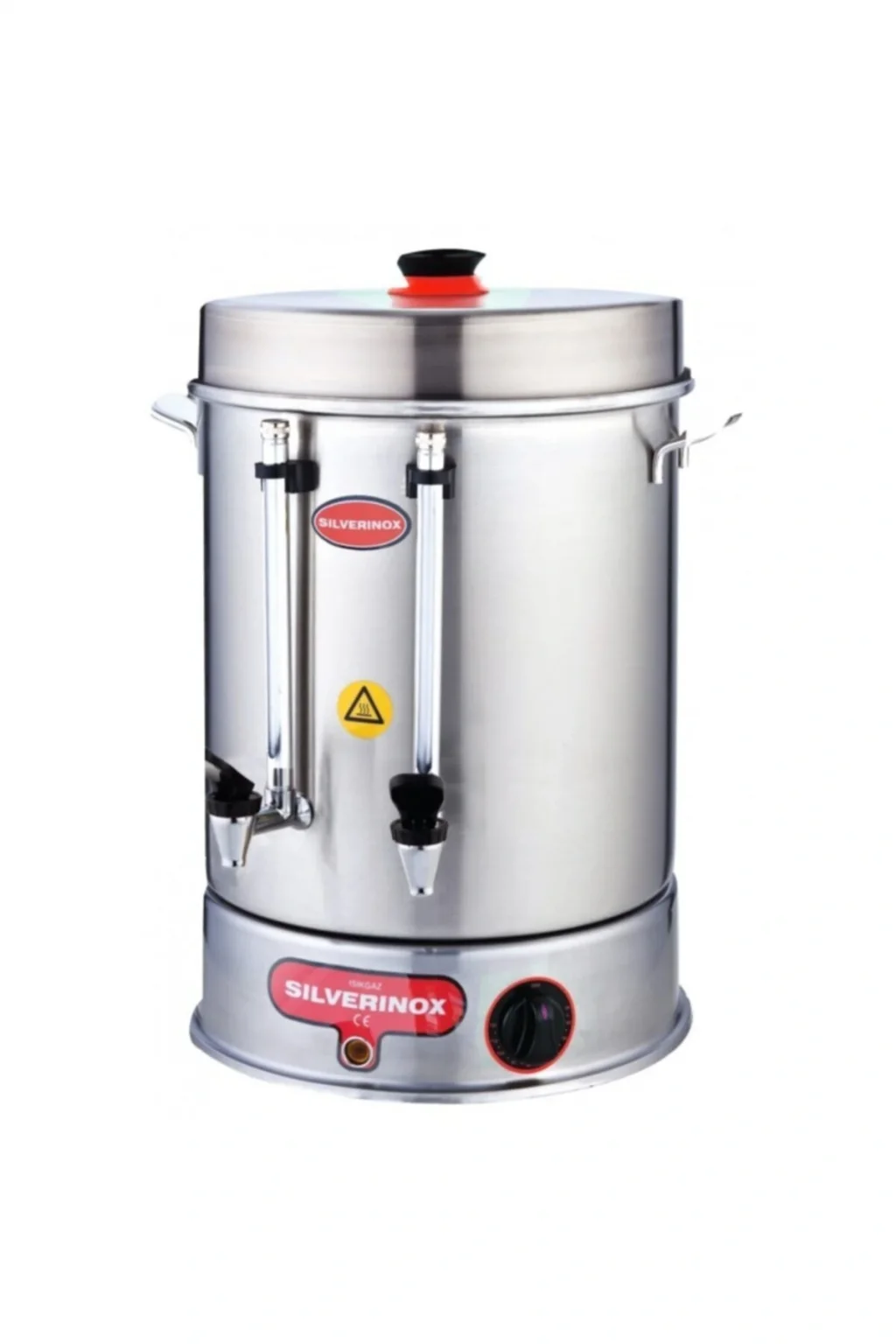 Şık ve modern tasarımıyla dikkat çeken Silverinox metal musluklu basmalı çay makinesi, mutfak dekorasyonunuza estetik bir dokunuş katıyor; Dayanıklı metal demlik yapısı sayesinde uzun ömürlü kullanım sunar ve çay demleme işleminizi kolaylaştırır; Çelik materyali ile yüksek ısı iletkenliği sağlar, böylece çayınızın ideal sıcaklıkta demlenmesini garanti eder; 60 bardak kapasitesiyle büyük misafir gruplarını bile rahatlıkla ağırlayabilir ve hızlıca çay servisi yapabilirsiniz; 7 litrelik geniş su haznesi sayesinde sık sık su doldurma ihtiyacını ortadan kaldırarak pratik bir kullanım sunar;