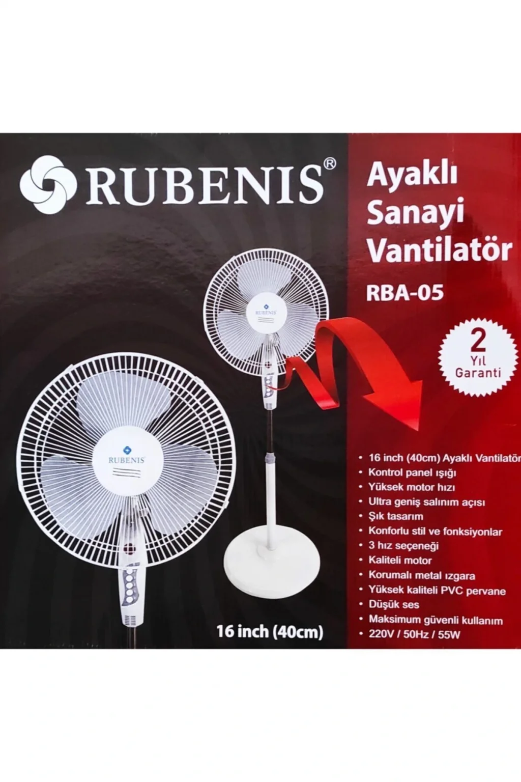 2 yıl ithalatçı garantisi ile güvenli kullanım sunar, olası teknik sorunlarda endişe etmenize gerek kalmaz; Ayaklı tasarımı sayesinde, istediğiniz yere kolayca yerleştirebilir ve istediğiniz açıda kullanabilirsiniz; 55 watt gücünde yüksek performanslı motoru ile etkili ve hızlı serinlik sağlar, yaz aylarında bile konforlu bir ortam yaratır;