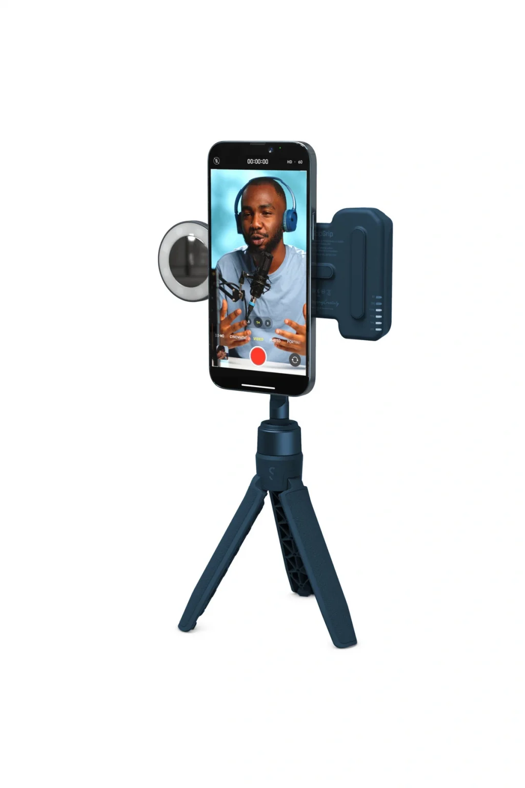 ShiftCam SnapGrip Mavi Magsafe Powerbank Özellikli Fotoğraf ve Video Vlog Combo Çekim Seti Manyetik geçmeli mobil bir pil yuvasıdır; MagSafe özellikli tüm mobil cihazlarla uyumludur; Magsafe etiketi ile diğer telefon modelleri ile de sorunsuz bir şekilde kullanılabilir; Bluetooth deklanşör özelliği sayesinde telefonun kamerasını kontrol etmenizi sağlar; Dahili kablosuz powerbank telefonunuz şarj edebilir; Yatay veya dikey olarak kullanılabilir; Uyumluluk iPhone 15 serisi ve Samsung Galaxy S23 serisi de dahil olmak üzere tüm telefonlarla çalışır SnapGrip Combo Kit şunları içerir: SnapGrip SnapPod SnapLight SnapShoe;