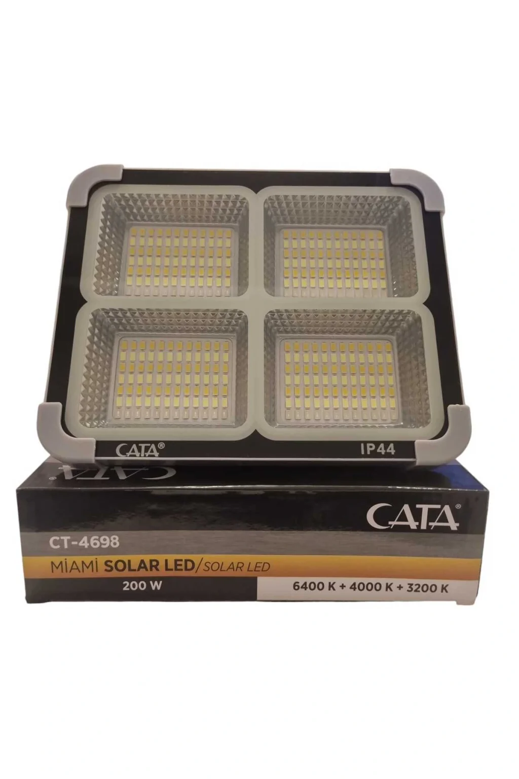 Cata CT-4698 Solar Şarjlı 200W - Powerbank özellikli -Ürün Arka kısmında solar panel bulunmaktadır.; ; (İlk seferde elektriksel şarjdan sonra sürekli olarak güneş yolu ile şarj edebilirsiniz) -Tek ürün üç farklı renk seçeneği sunmaktadır.; ; (Beyaz, Günışığı, 4000K her düğmeye bastığınızda rengi değişmektedir.; ) -Acil Durum Işığı bulunmaktadır.; ; (kırmızı mavi flaş modu) -IP 44 koruma sınıfında olup -Ürün 170mm x 210mm x 53 mm ölçülerindedir.; ; -Ürün Üzerinde type-C girişi ve USB çıkışı bulunmaktadır.; ; (TELEFON TABLET VS ŞARJ EDEBİLİRSİNİZ);