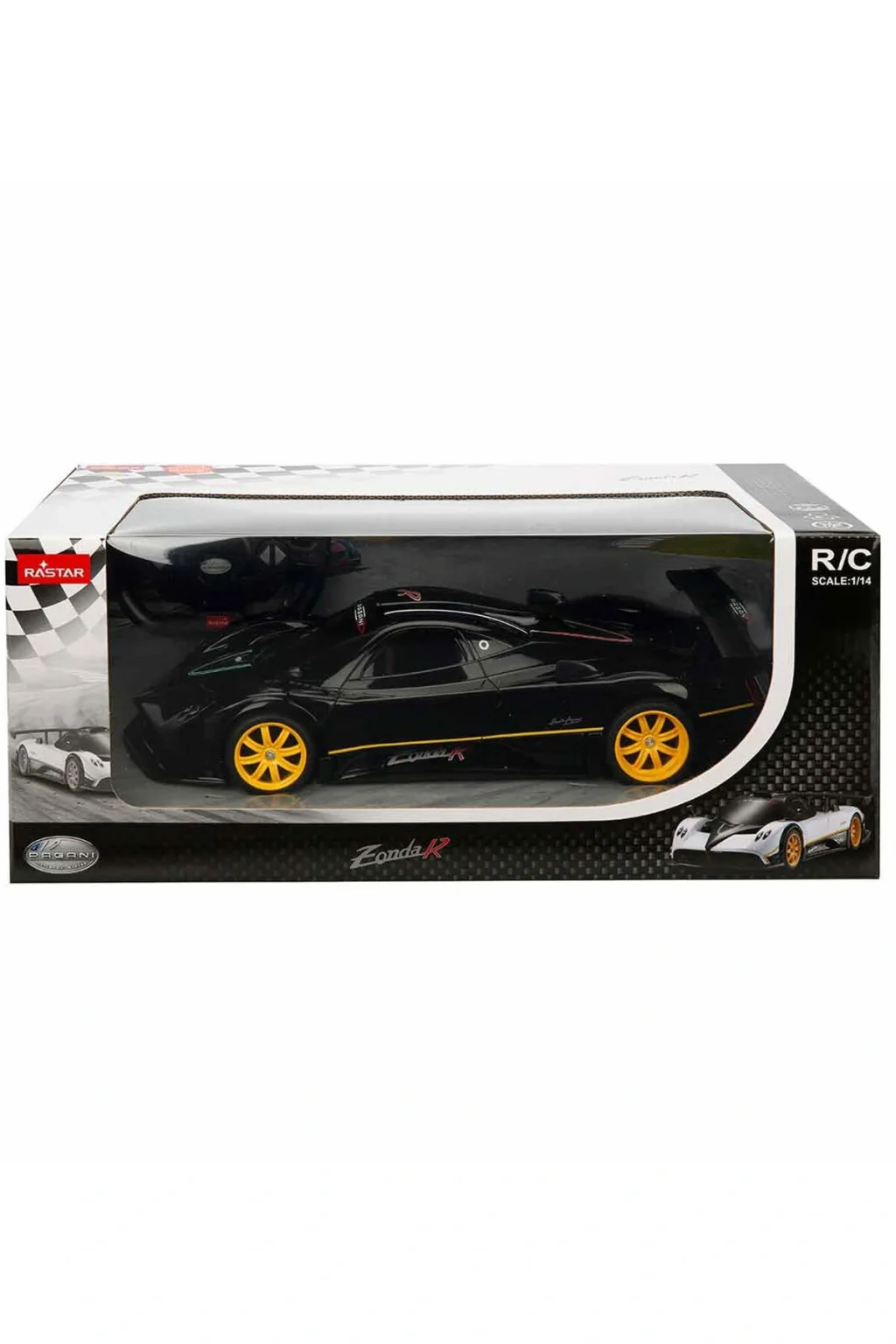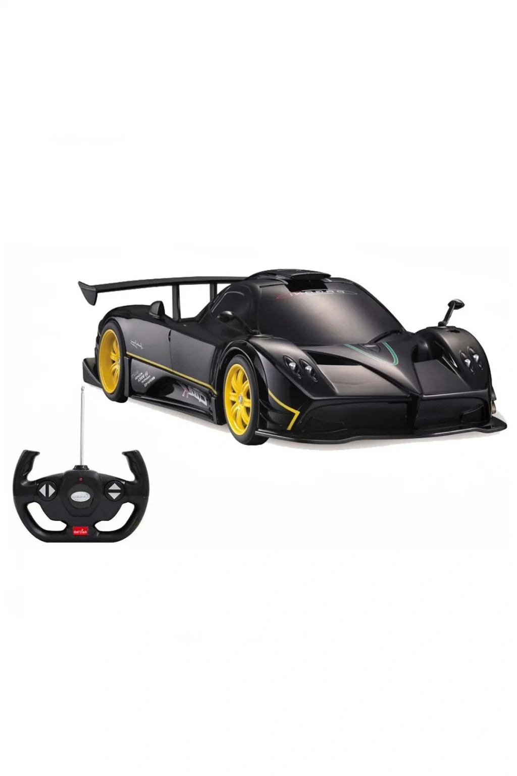 Uzaktan kumandalı Pagani Zonda R arabanın 1:14 oranında küçültülmüş harika modeli ile hız tutkunlarını büyüleyecek! Full fonksiyonlu (ileri-geri, sola-sağa dönüş), uzaktan kumandalı ve ayrıntılı detay tasarım özellikleri bulunmaktadır.; 35 cm.; uzunluğundaki uzaktan kumandalı araba 2.4 GHz radyo kontrol frekansına sahiptir.; Gerçeğiyle neredeyse aynı olan model; kauçuk lastikler, detaylı jantlar ve bağımsız süspansiyon sistemi ile donatılmıştır.; Çocukların; motor becerilerinin, hayal güçlerini, hareket ve beceri koordinasyonunun gelişmesine yardımcı olmaktadır.; Kutu içerisinde; Pagani Zonda R araba, uzaktan kumanda ve Türkçe kullanım kılavuzu yer almaktadır.; Serinin; siyah ve beyaz renkli araba olmak üzere 2 farklı modeli bulunmaktadır.; Araba: 5 x 1,5V AA pil ile çalışır.; Kumanda: 2 x 1,5V AA pil ile çalışır.; Piller kutuya dahil değildir.; Kutu ölçüsü: 43,5 x 23 x 17,5 cm Ürün ağırlığı: 1,070kg