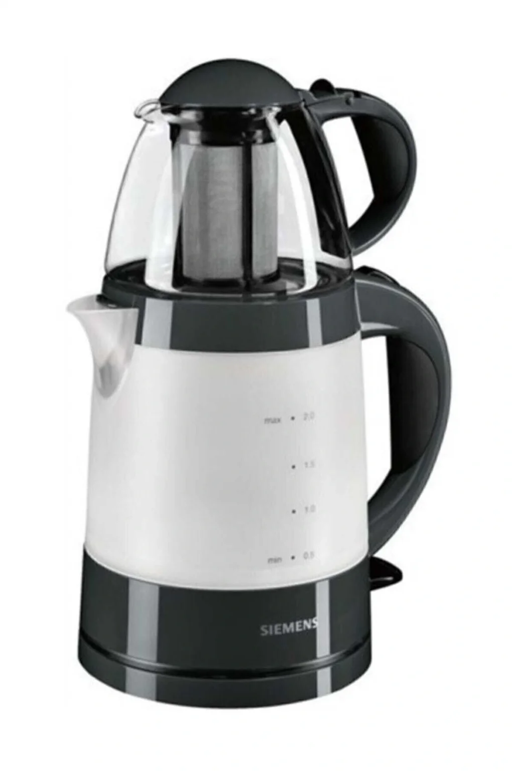 Siemens elektrikli çaydanlık; suyun hızlı bir şekilde ısıtılmasını sağlayarak çay demlemek için kullanılır.; Fonksiyonel tasarımı ve özellikleri ile çay demleme ve su kaynatma işlemini pratikleştirir.; ; Cam çaycı; 1785 Watt'lık gücüyle suyu hızlı bir şekilde hazırlarken ideal sıcaklıkta tutarak soğumasını önler.; 2 litrelik plastik su ısıtıcısı ile su kaynatma işlemi yapan siyah çaycı; 0.7 litrelik cam demliğiyle lezzetli ve sağlıklı bir demleme deneyimi sunar.; Homojen bir su dağılımı ile demleme işlemi yapan çaycı; aroması yüksek bir çay içimini destekler.; Su seviye göstergesi ile su miktarını kolayca takip etme imkanı sunan TA22005 çay makinesi; yeterli miktarda su eklemesi yaparak kullanılır.; ; Gizli çelik rezistans ile kireç oluşumunu azaltan Siemens TA22005 çay makinesi; çelik çay filtresiyle kaliteli dem oluşturur.; Şık tasarımı ile beğeni toplayan yapıdaki çaycı; modern görünümü ile mutfağa zarafet kazandırır.; ; Çalışma durumunu gösteren ışıklı halojen halkaya sahip olan Siemens TA22005; makinenin çalıştığını anlamayı kolaylaştırır.; ; 360° hareket edebilme özelliği sayesinde sağ ve sol el kullanımına uygunluğunu artıran plastik çay makinesi; susuz çalışmama özelliği sayesinde olası riskleri ortadan kaldırır.; Kendini korumaya alan çay makinesi; otomatik olarak kapanıp arızalanma gibi durumları ile karşılaşmayı engeller.;