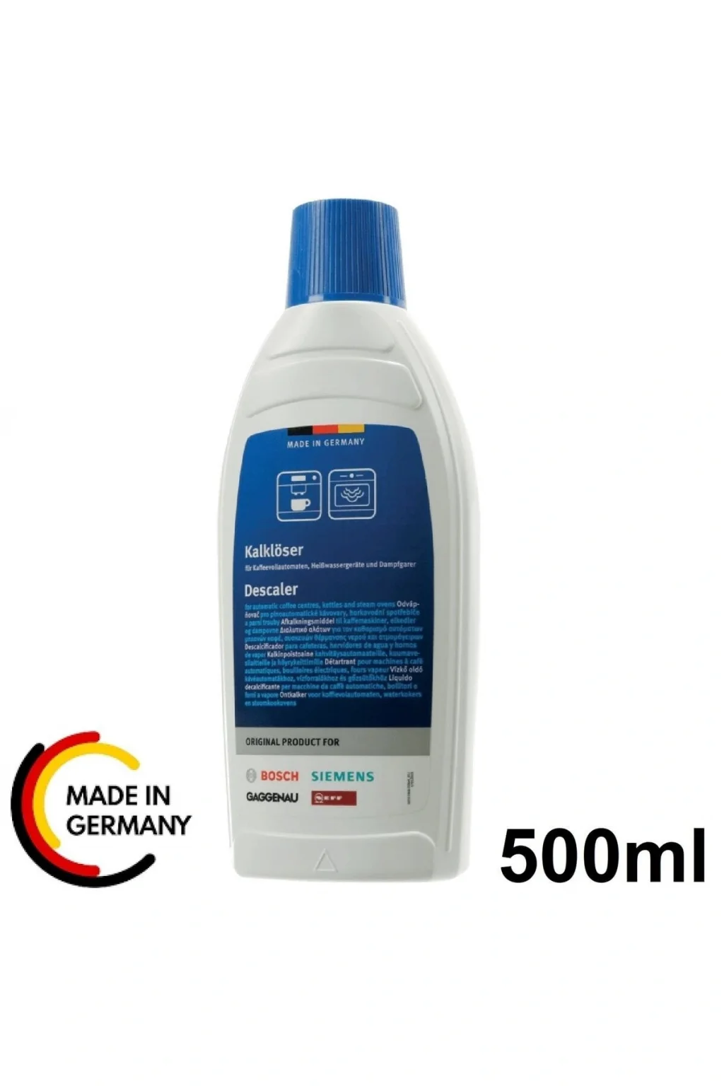 KİREÇ ÇÖZÜCÜ TEMİZLEME SOLÜSYONU: Otomatik kahve makinaları, su ısıtıcıları ve su hazneli buhar fırınları için kireç sökücü/çözücüdür. Cihazınızdaki zararlı kireç kalıntılarını etkili bir şekilde çıkarmak için kullanmanız önerilir. ; ; Kullanım Talimatı: 100ml kireç çözücü (şişe içeriğinin 1/5'i) tanka dökün, işarete kadar su ile doldurun. Dikkat: Cihaz'ın kullanma talimatlarına göre uygulayın. (Tam olarak belirtilen miktarlara uyun)500ml / 5 Kullanımlıktır. Uygulama yöntemi için cihazınızın kullanım kılavuzundan yararlanabilirsiniz. ; ; (BOSCH SIEMENS GAGGENAU ORİJİNAL ÜRÜNÜDÜR) HER MARKA ESPRESSO VE KAHVE MAKİNESİ İÇİN KULLANILABİLMEKTEDİR. ; ; Made in Germany ;