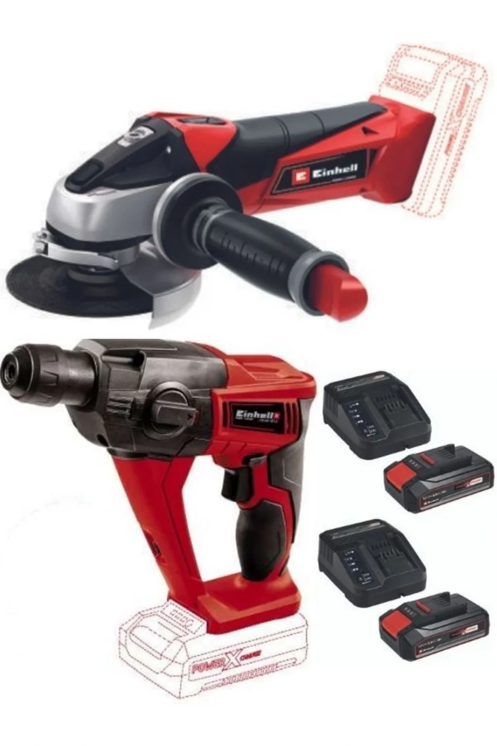 SET İÇERİĞİ 1 Adet Einhell TE; HD 18 Lİ Akülü Vidalama Delme 18v 1 Adet TE; AG 18/115 Akülü Avuç Taşlama 18v 2 Adet 2; 5ah akü ve 2 adet şarj ünitesi (starter kit) paket içerisinden 2 adet 2; 5ah akü ve 2 adet şarj ünitesi çıkmaktadır her iki ürüne de ve tüm einhell power x; change ürünlere uyumludur; ürünler karton kutuludur;