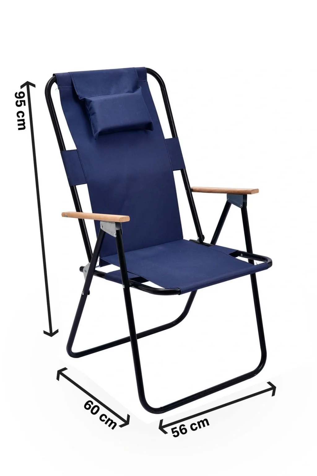 Yastıklı yüksek sırtlı katlanır büyük boy kamp piknik sandalyesi, ağaç kollu-Lacivert Ürün Açıklaması Kamp, piknik, bahçe, sahil, plaj gibi birçok yerde kullanılır. ; Pratik katlanması sayesinde hızlı kullanım sağlar. ; Katlanabilme özelliğine sahip olduğu için az yer kaplamaktadır. ; Sırt kısmı eğimli olduğu için rahat bir oturma alanı oluşturmaktadır. ; Yastıklı yapısı sayesinde keyifli kullanım sağlar. ; 100 kiloya kadar taşıma kapasitesi mevcuttur. ; Teknik özellikleri: Açık ölçüleri:56x60x92,5 h/cm Kapalı ölçüleri:56x6x89,5 h/cm Taşıma kapasitesi:100 kg Kumaş:%100 Polyester Materyal:Metal Oturma ölçüsü: 46x41 cm Oturma yüksekliği:40 cm Ağırlık: 2,8 kg;