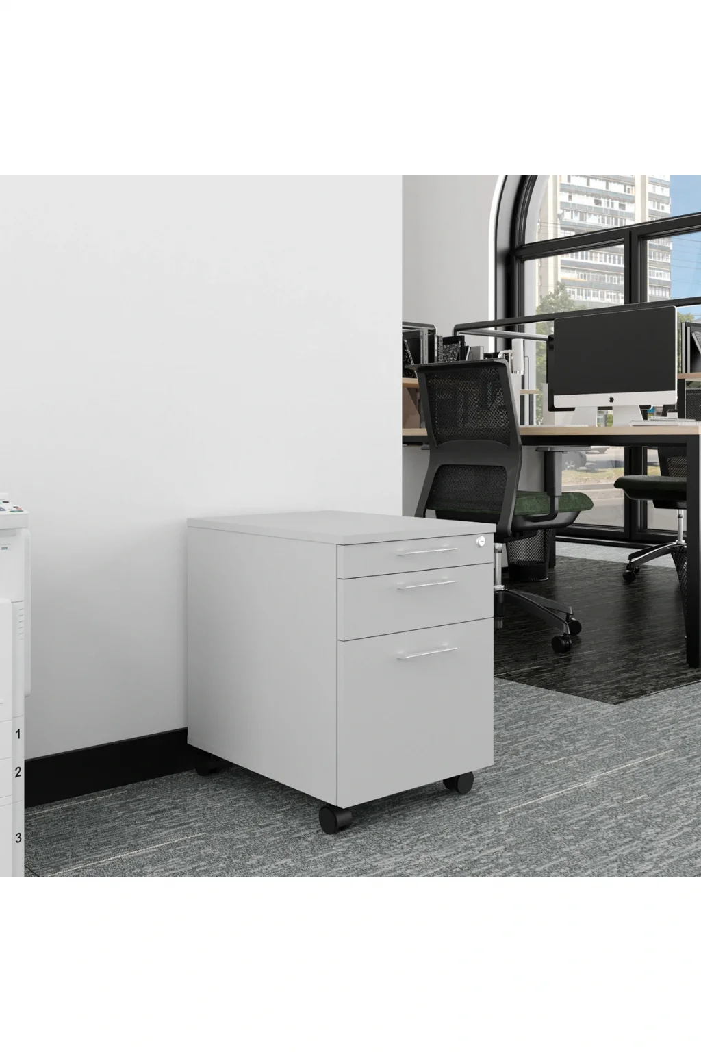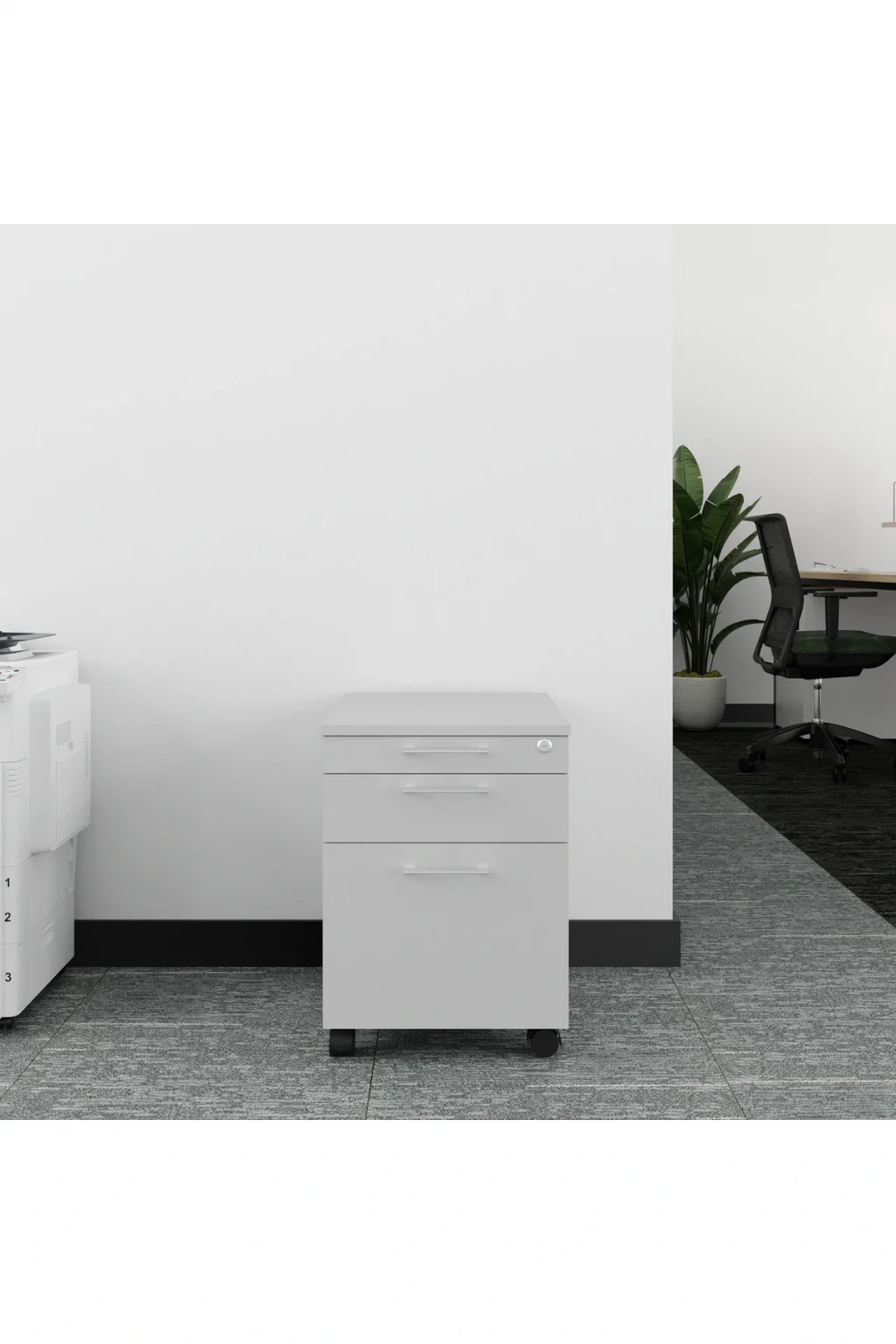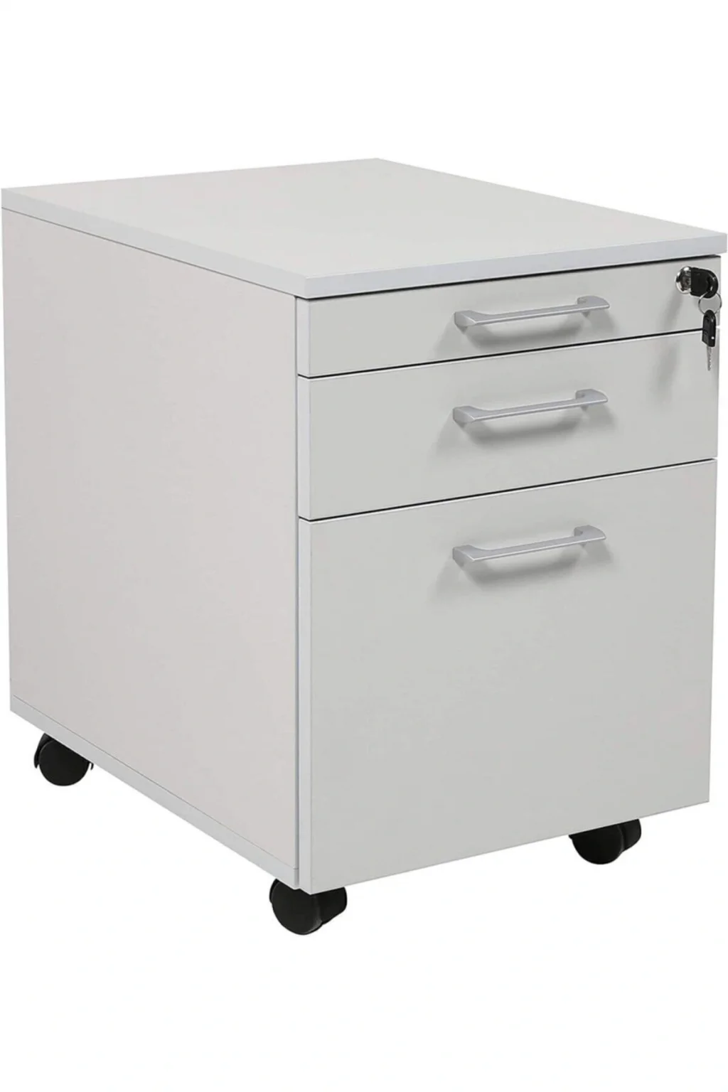 Ahşap malzeme kullanımı sayesinde dayanıklılık ve uzun ömürlü kullanım sunar; Kilitlenebilir tasarımı ile dosya ve belgelerinizi güvenle saklamanızı sağlar; Üç geniş çekmece, farklı boyutlardaki eşyalarınız için yeterli depolama alanı sunar; Tekerlekli yapısı, kolayca taşınabilirlik ve istenilen yere rahatça yerleştirilebilirlik imkanı tanır;