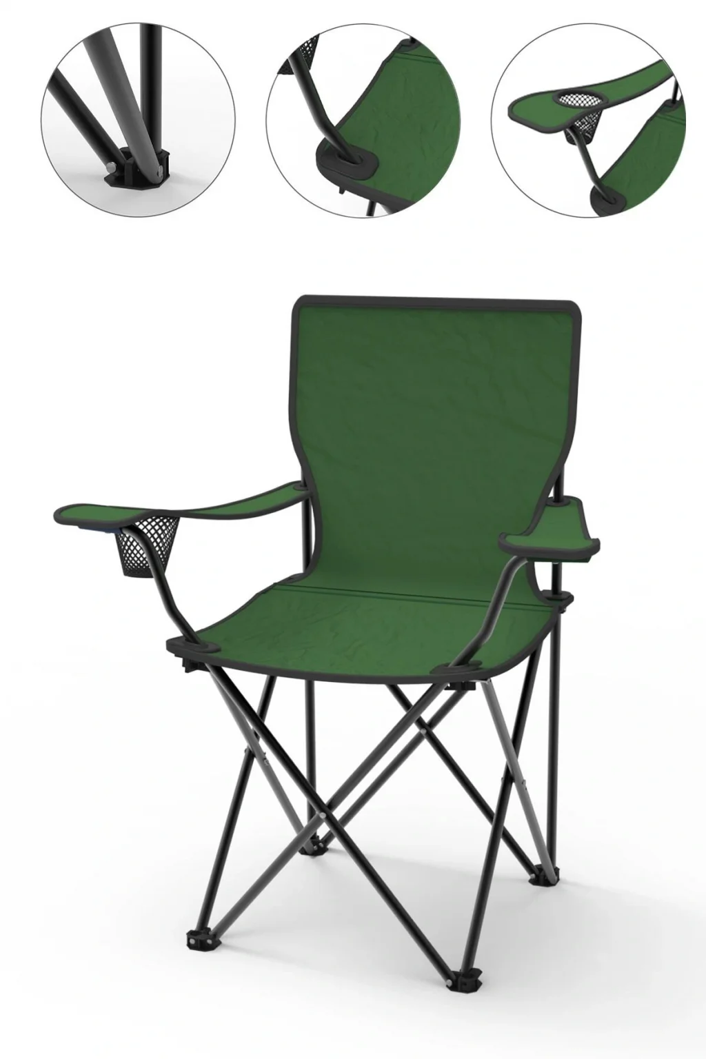 Dayanıklı metal malzeme kullanımı sayesinde uzun ömürlü ve sağlam bir yapı sunar; Katlanabilir modeli ile taşıması kolay ve depolama alanından tasarruf sağlar; Tek kişilik tasarımı, bireysel kullanım için idealdir ve kamp, piknik gibi aktivitelerde rahatlık sunar; Yeşil renk seçeneğiyle doğa ile uyumlu bir görünüm kazandırır;