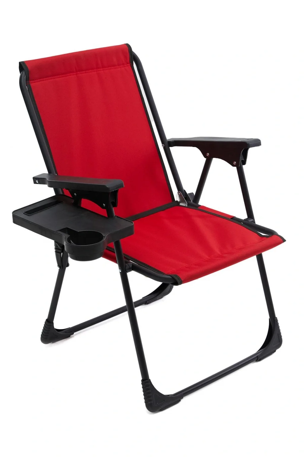 Genel Ürün Tekli Natura Kamp Sandalyesi Katlanır Piknik Sandalye Dikdörtgen Bardaklıklı Kırmızı Spor Tek Kişil