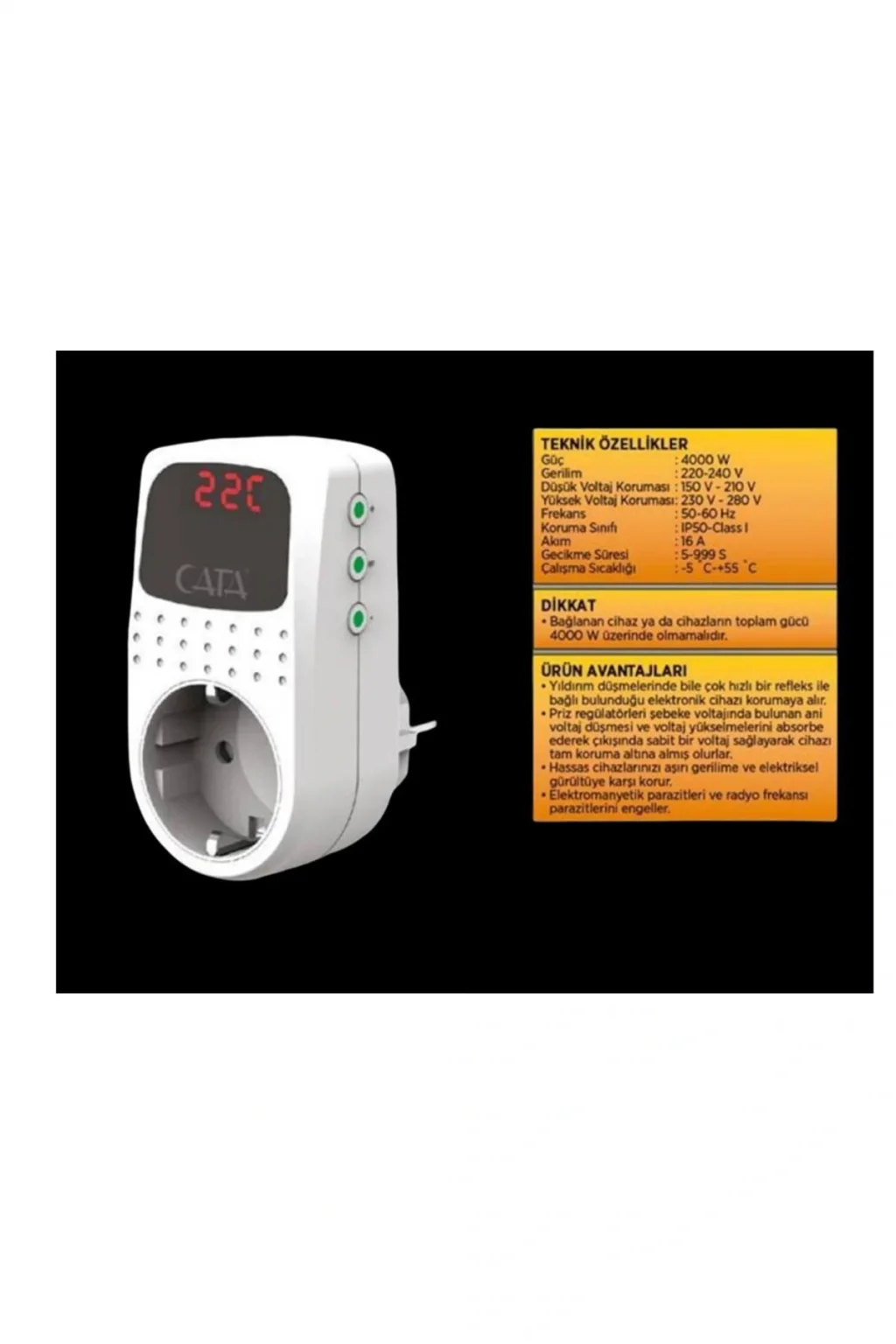 Cata markasının üretmiş olduğu priz çeşitlerinden biridir. ; Oldukça kullanışlı bir ürün olan priz regülatör, kullanıcıya hem verimli hem de güvenli kullanım olanağı sunar. ; Priz üzerinde kolay kontrol sağlayabileceğiniz led göstergesi bulunur. ; Bu gösterge sayesinde korumanın devrede olup olmadığını rahatlıkla anlayabilirsiniz. ; Pc, tv, led, lcd, notebook, çamaşır makinesi, buzdolabı, ses sistemi, mikrodalga fırın ve daha pek çok ürünü cata priz regülatör ile kullanabilirsiniz. ; 220v girişine takacağınız cihazlarınızın güvenli kullanım için toplam güçlerinin 3500w üzerinde olmaması gerekir. ; Tekli priz, korumalı yapıya sahip olan bir üründür. ; Yıldırım düşmesinin etkilerine karşı cihazlarınızın korunmasını sağlarken, ürün içerisine yabancı cisimlerin sokulmasının ve çocukların kullanımının engellenebilmesi adına çocuk koruması da bulunmaktadır. ; Sahip olduğu kaliteli ve sağlam yapısı sayesinde uzun ömürlü kullanım olanağı sağlar. ; Ürün özellikleri Akım : 20 a Gerilim : 150-280 v Güç : 4000 w;