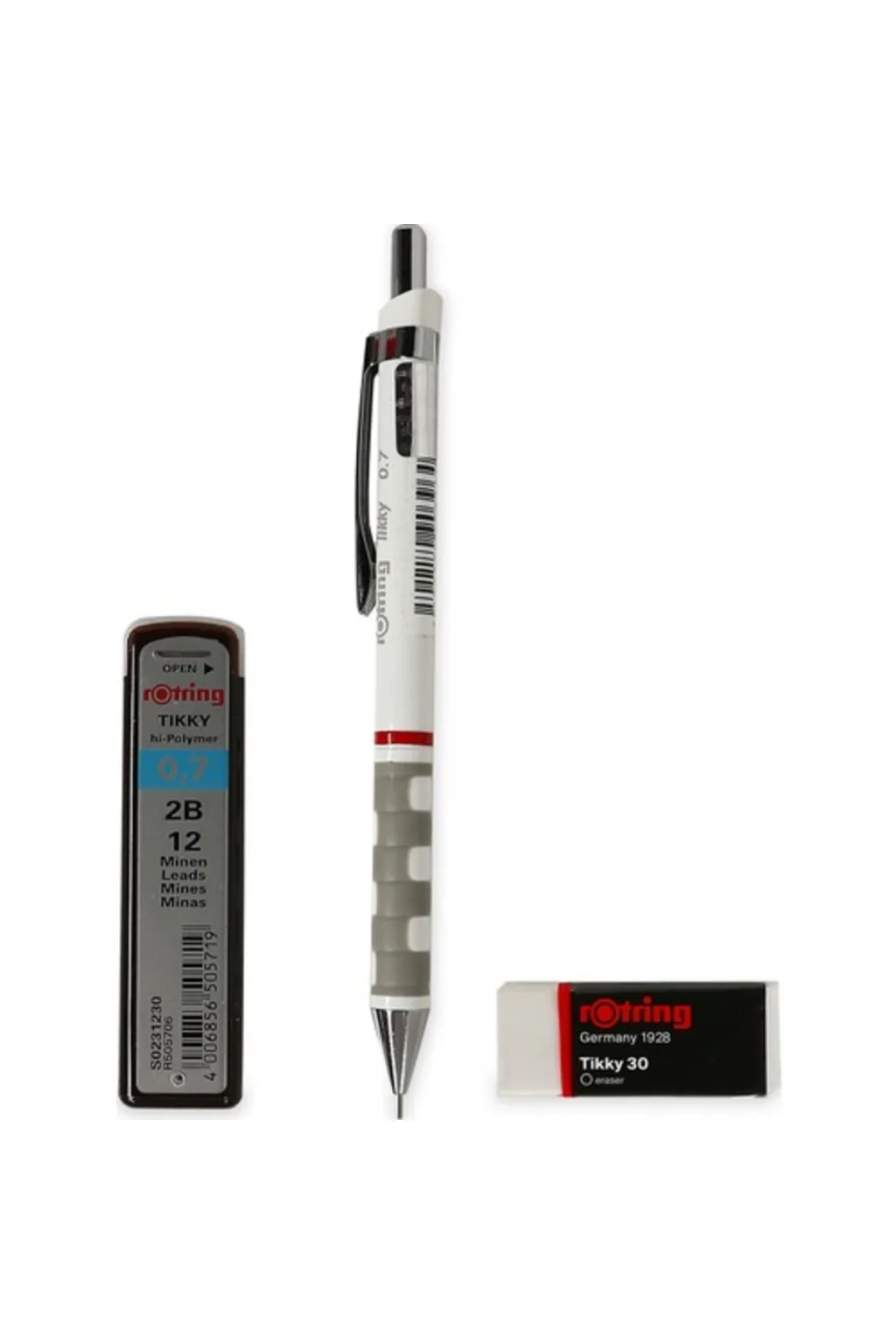 Rotring Tikky Okul Seti 0.7 mm Beyaz Versatil Kalem + Silgi + Uç Birinci kalite malzemelerden üretilen Rotring Tikky okul setleri ile yeni okul döneminde temel ihtiyaçlarınızı tek seferde karşılayın! Klasik bordo tasarımdan sıkılan kullanıcılar için tikky şimdi mavi rengi ile karşınızda. Her türlü yazı ve çizim işleriniz için özel olarak ve çok amaçlı bir şekilde tasarlanan rotring tikky uçlu kalemler, rotring tarafından üretilen ve tüm öğrenciler tarafından keyifle kullanılan orijinal ve klasik bir rotring ürünüdür. Yazım ve çizimleriniz sırasında sizi yormayacak şekilde tasarlanan rotring tikky uçlu kalemler yumuşak tutma alanı, dayanıklı plastik gövde ve uç kırılma sorununu en aza indiren sabit uç manşonu ile birlikte geliyor. Çok Amaçlı ve Ergonomik Kullanım Ergonomik hassasiyetler öngörülerek tasarlanan tikky kalemler üçgen formu sayesinde, akıcı ve rahat bir çizim yapabilmenize olanak sağlıyor. Sabit uç çıkışı, siz çalışırken görüşünüzü etkilemez ve çizim odaklı çalışanlar için hassas bir uç tutuşu sağlar. Set içerisinde yer alan polimer/grafit kalem izleri için özel olarak üretilen tikky 40 markalı silgi, olası hataları kirleri yakalayıp ve topak haline getirerek kâğıtta bir aşınma yapmadan ve çalışmalarınıza zarar vermeden siler ve ortam yüzeyini daima temiz kılar. Sayfa görüşünü engellemeyen ve hassas çizimlere imkân tanıyan kalem uç manşonu tasarım; Set kutusu aynı zamanda taşıma kalem kutusu olarak kullanılabilir; Kalem üzerinde dahili ve set ile birlikte gelen harici silgiler; Ergonomik ve dayanıklı kalem gövdesi; Tarzınızı yansıtan mavi tasarım; Set içerisinde 1 adet Rotring 0.7 mm beyaz versatil kalem, 1 adet 0.7 mm. 12’li rotring blister uç ve 1 adet Tikky 40 markalı silgi bulunmaktadır. Teknik Özellikleri 0.7 mm uçlu dahili silgili kalem; 0.7 mm 12'li Dayanıklı ve esnek blister uç; İz bırakmayan ve topaklanan tikky silgi; Plastik, kauçuk ve metal malzeme; Mekanik Kurşunkalem