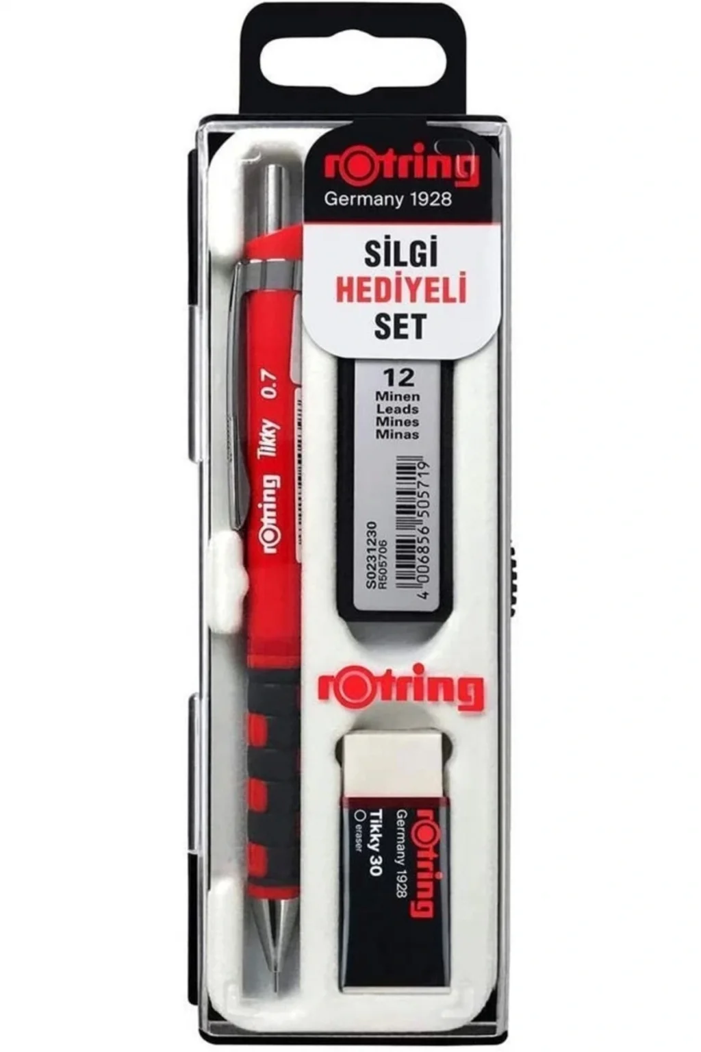 ROTRING TIKKY VERSATİL KALEM SETİ 07 KIRMIZI (KALEM+SİLGİ+MİN) KK SET