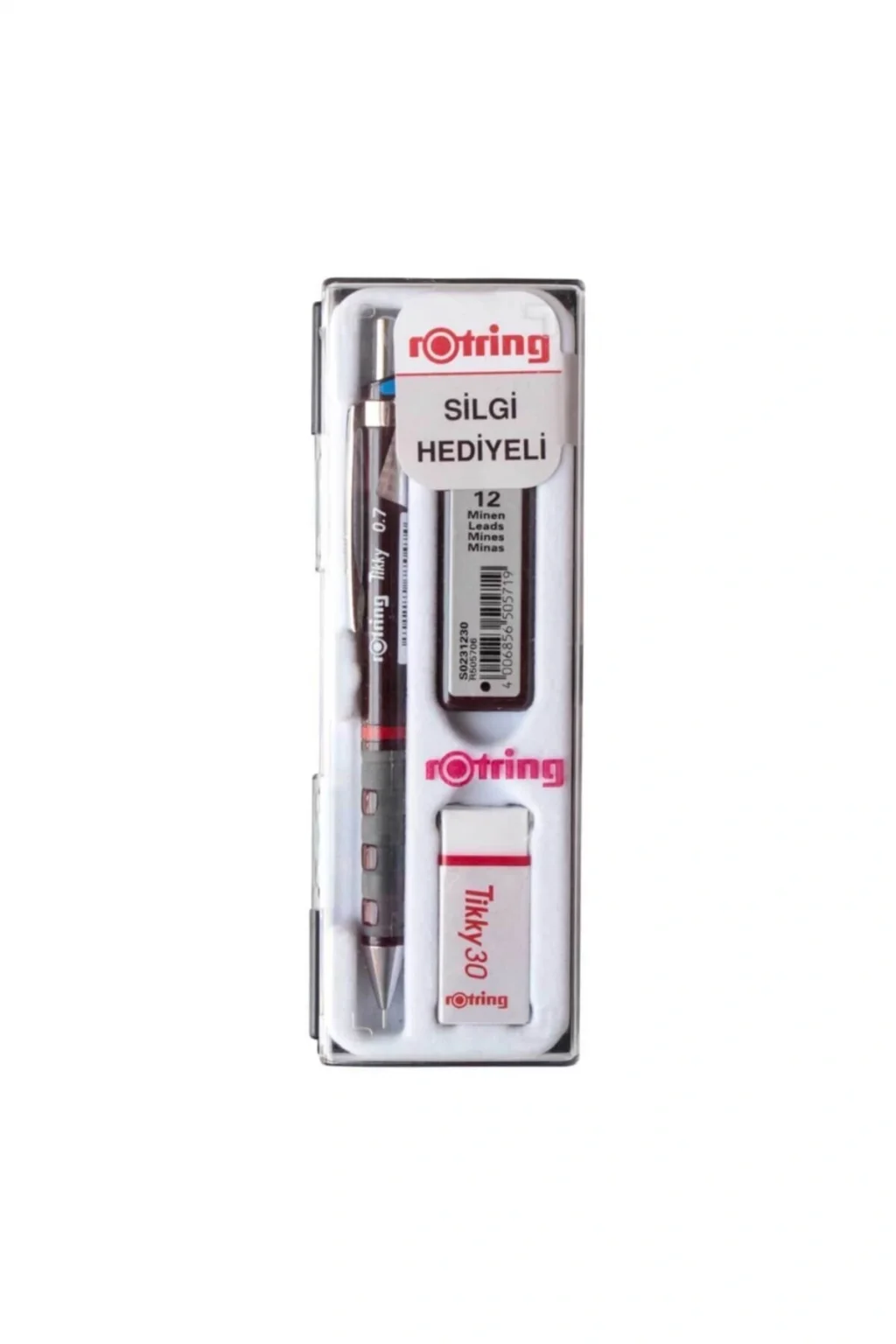Ürün Kodu : T02004201 Marka : Rotring Üretim Yeri : Çin Yaş Aralığı : 8 yaş ve üzeri Cinsiyet : Unisex Barkod : 8699290042016 Yazım, çizim ve karalamalarda en iyi sonuç ve konfor sağlayan yumuşak tutma yeri ile Rotring bordo versatil kalem seti sizlerle! Okul için ihtiyacınız olan her şeyi bu sette bulabileceksiniz! Esnek ve dayanıklı yapısı sayesinde uç kırılma sorununu önleyen yüksek polimer yedek uç özelliklerine sahiptir. Set içerisinde; 1 adet Rotring 0.7 mm. versatil kalem, 1 adet 0.7 mm. 12'li rotring uç ve 1 adet Tikky 30 markalı silgi bulunmaktadır. Uç kalınlığı: 0.7 mm.