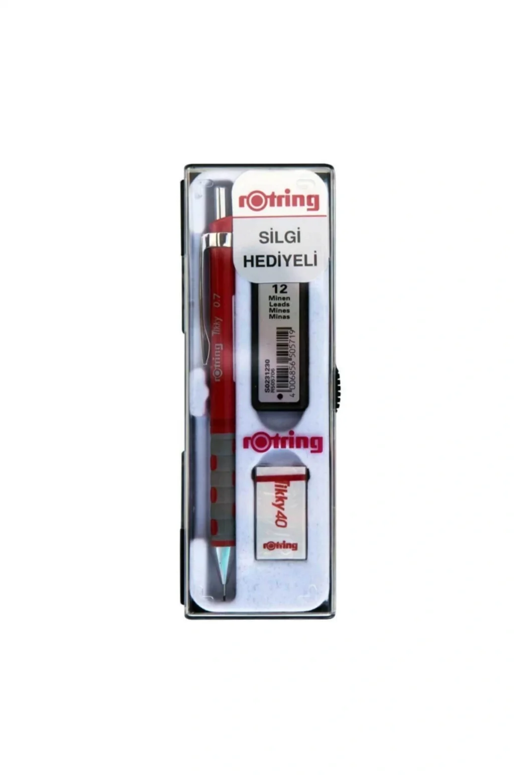 Ürün Kodu : T01004273 Marka : Rotring Üretim Yeri : Çin Yaş Aralığı : 8 yaş ve üzeri Cinsiyet : Unisex Barkod : 8699290042733 Yazım, çizim ve karalamalarda en iyi sonuç ve konfor sağlayan yumuşak tutma yeri ile Rotring Kırmızı versatil kalem seti sizlerle! Okul için ihtiyacınız olan her şeyi bu sette bulabileceksiniz! Esnek ve dayanıklı yapısı sayesinde uç kırılma sorununu önleyen yüksek polimer yedek uç özelliklerine sahiptir. Set içerisinde; 1 adet Rotring 0.7 mm. versatil kalem, 1 adet 0.7 mm. 12’li rotring uç ve 1 adet Tikky 30 markalı silgi bulunmaktadır. Uç kalınlığı: 0.7 mm.