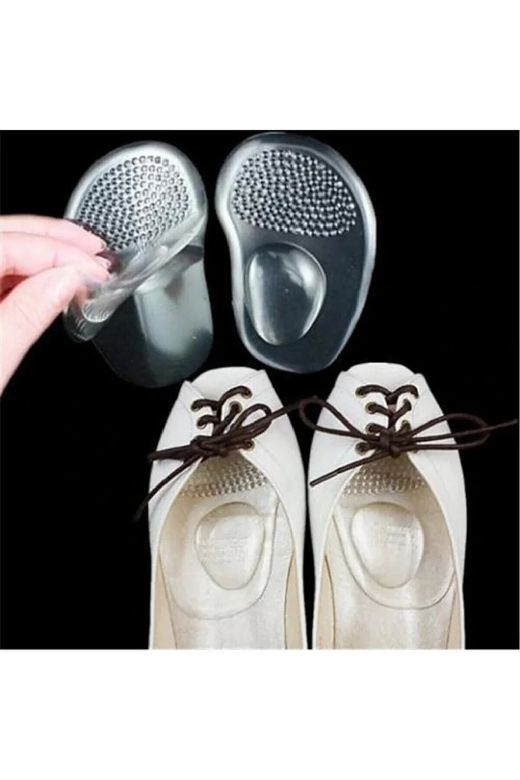2'li(1 ÇİFT) Silikon Ark Destek Ayakkabı Kaydırmaz Jel Tabanlık Nasır Koruma, Nasır Oluşumunu Önleyici Ürün Özellikleri: Şekil itibariyle ayak ark boşluğunu destekler; Özellikle topuklu ayakkabılarda ayakların öne kaymasını engeller; Uzun yürüyüşlerde oluşan ayakkabı vurma etkisini önler; Her türlü ayakkabı modeli ve boyutunda kullanılabilmektedir; Silikon malzemeden üretilmiştir; Şeffaf renktedir; Ürün Ölçüsü; Ürün uzunluğu: 9cm; Ön kısım: 6 cm 1 ÇİFT olarak Gönderilir ;;