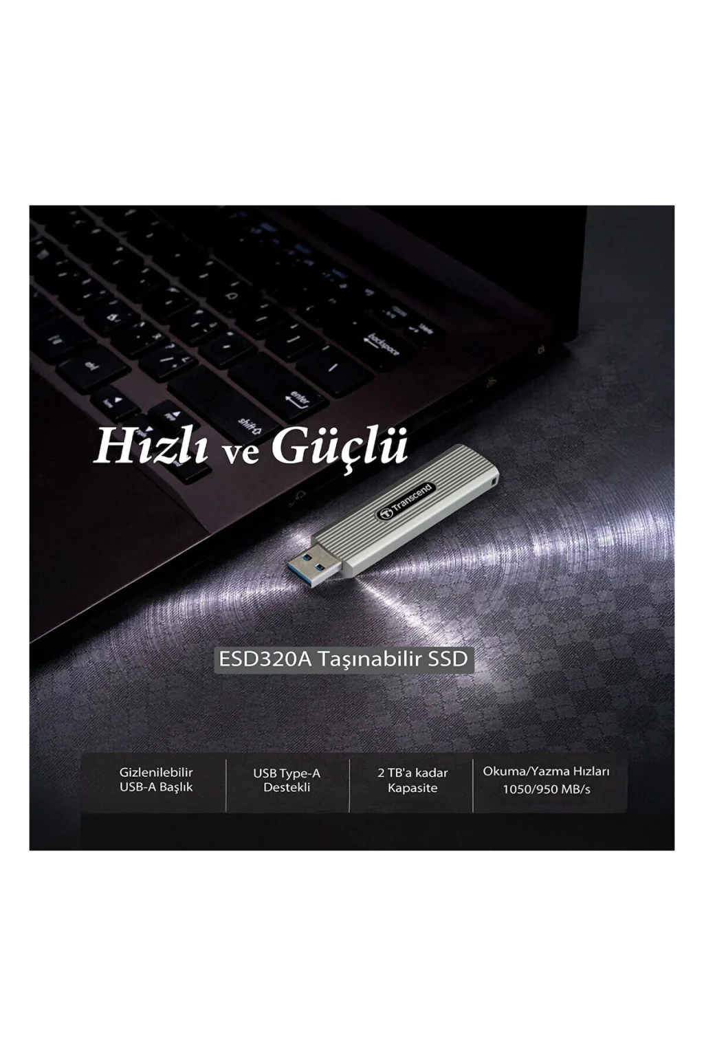 Genel Ürün TS2TESD320A 2TB USB 10Gbps 1050/950MB/s Gizlenebilir Başlıklı Taşınabilir Metal Kasa SSD