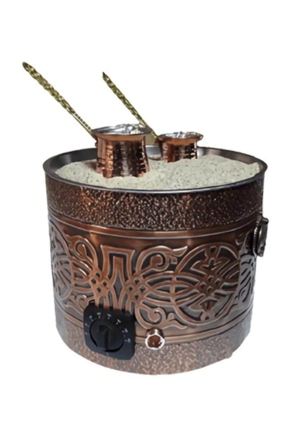 Kumda türk kahvesi makinesi bakır iki cezveli kumda kahve yapma makinası kum ve 2 bakır cezve fiyata dahildir. ; Kumu, ateş tuğlası yapımında kullanılan toprak türündendir. ; Aynı anda birden çok cezve ile kahve pişirme imkanı sunar. ; Bakır işlemeli ürünlerimizde kullandığımız naif ve geleneksel motifler, eski anadolu uygarlıklarından esinlenmedir ve estetik olarak benzersizdir. ; Kumu, ateş tuğlası yapımında kullanılan toprak türündendir. ; Aynı anda birden çok cezve ile kahve pişirme imkanı sunar. ; Bakır işlemeli ürünlerimizde kullandığımız naif ve geleneksel motifler, eski anadolu uygarlıklarından esinlenmedir ve estetik olarak benzersizdir. ; Çap 26 cm yükseklik 22 cm ağırlık 5 kg güç 1000 w anma frekansı 50 – 60 hz 2 yıl garantili;