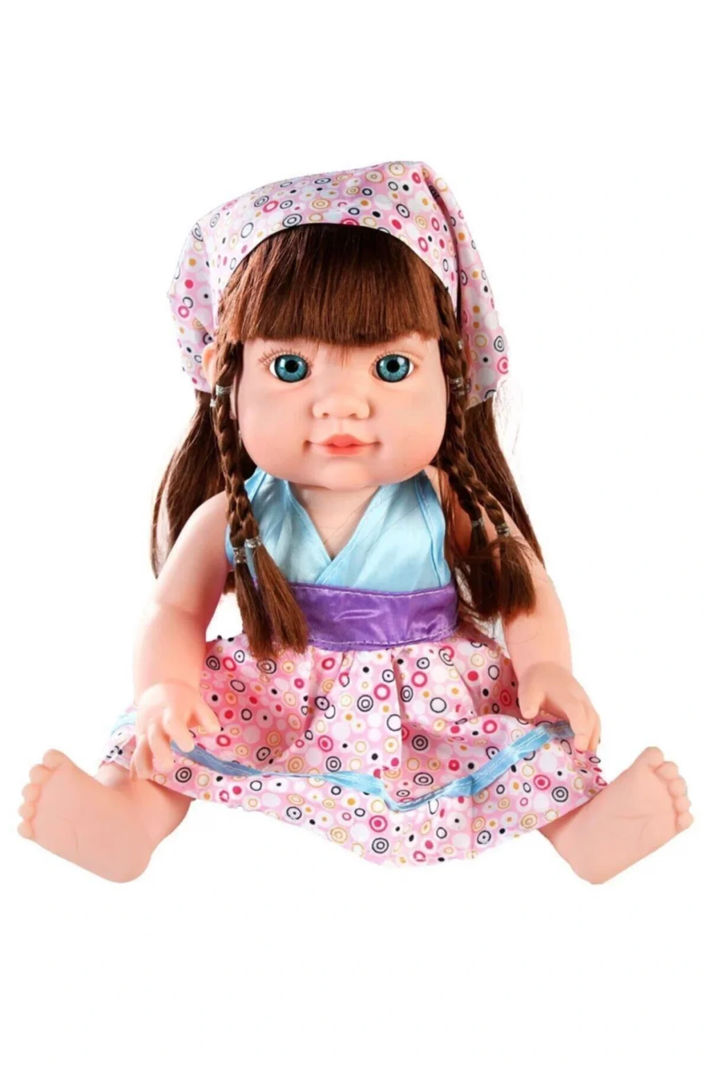 Oyuncak türkçe konuşan bebek çocuk bu bebekle çok eğlenecek! keyifli/eğlenceli melodi dinletisi bulunmaktadır, Yaklaşık 20 farklı cümle söylüyor.; 30 cm uzunluğundadır.; 3 yaş altı çocular için uygun değildir.; Bebek: Anneciğim sen benim en iyi arkadaşımsın,çok susadım anneciğim,karnım acıktı,ateşimi ölçermisin,karnım ağrıyor,kendimi çok kötü hissediyorum,çok çişim geldi,altımı ıslatmış olabilirim,burnuma kötü koku geliyor,bu şurup çok güzel,benimle oynar mısın,saçlarımı tararmısın anneciğim,haydi şarkı söyliyelim,şarkı söyler,bana masal anlatırmısın,masal anlatır,çok uykum geldi,iyi uykular,seni seviyorum anneceğim,cümlelerini söyler stokta bulunan renk gönderilir elbise modelleri ve saç renkleri değişkenlik gösterebilir.; Ürün fiyatı 1 adet içindir