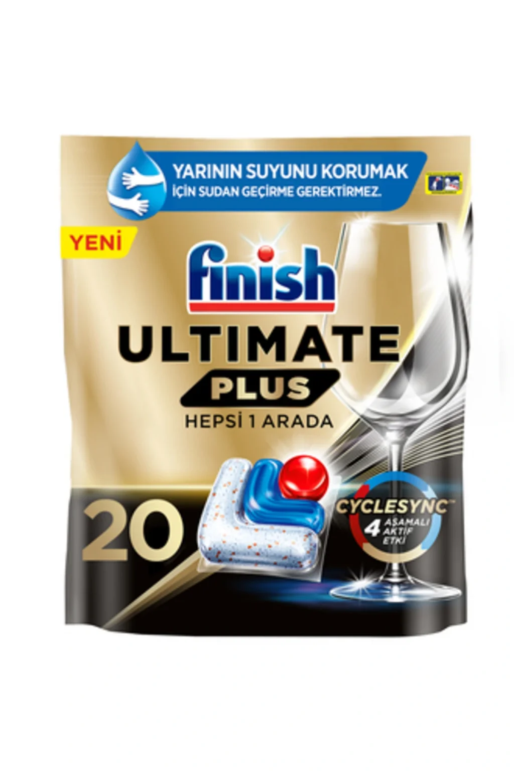 Finish Ultimate Plus Hepsi Bir Arada Bulaşık Makinesi TabletiCYCLE SYNC™ teknolojisine sahip makineyle uyumlu çalışan ilk tablettir. ; Diğer tabletlerdeki içerikler aynı anda aktive olarak birbirlerinin etkinliğini azaltır. ; Cyclesync™ teknolojisi sayesinde her bileşen sırayla, doğru zamanda, doğru leke tipine etki ederek temizlik gücünü arttırır. ; Yanmış lekeleri, sudan geçirmenize gerek kalmadan çıkarır. ; Elmas parlaklığı sağlar. ; CYCLE SYNC™ 4 AŞAMALI AKTİF ETKİGelişmiş formülü ve kapsül tablet formatıyla, yanmış lekeleri bile sudan geçirmeye gerek duymadan çözer ve yıkama döngüsü boyunca 4 aşamalı aktif etki sağlar.1. ; & 2. ; Etki: Tabletteki beyaz toz yanmış lekelerini parçalar ve kırmızı parçacıklar karbonhidrat bazlı lekeleri temizler.3. ; Etki: Tabletteki mavi jel, zorlu yağ lekelerinin üstesinden gelir.4. ; Etki: Tabletteki kırmızı Powerball bulaşıklarda elmas parlaklığı sağlar. ; CAM BULAŞIKLARINIZI KORUYUN: Ultimate Plus, cam bulaşıklarınızı ve çatal bıçak takımlarınızı korur ve bakımını* yaparak her yıkamadan sonra parlak kalmasını sağlar. ; Finish'in sert tabletlerine göre %15 daha az kimyasal içerir ve daha iyi gösterir***Bardaklarınızı aşınma ve matlaşmanın verdigi zarara karşı koruyacak koruma ajanları içerir. ; Bu ürün mekanik hasara karsı bir koruma sağlamaz ve halihazırda hasar görmüş bulaşıklarınızı eski haline çevirmez.**Finish Power Tableti ile karşılaştırıldığında BULAŞIKLARINIZI SUDAN GEÇİRMEDEN YIKAYIN: Bırakın bulaşık makineniz ve güçlü Finish Ultimate Plus formülü bulaşıklarınızı sudan geçirmeden temizlesin. ; BULAŞIK YIKAMA DENEYİMİNİZİ TAMAMLAYIN1. ; Parlatıcı & Kurutucu: Bulaşıklarınızın kullanıma hazır kurulukta ve parlaklıkta olmasına yardımcı olur. ; Cam aşınmasına karşı korur.2. ; Makine Temizleyici: Makinenizin görünmeyen yerlerinde biriken yağ, kir ve kireci derinlemesine temizler ve maksimum hijyen sağlar. ; #1 Öneriyor***Lider bulaşık makinesi üreticileri tarafından tavsiye edilmektedir. ; (Arçelik, Beko, Bosch, Siemens, LG, Profilo);