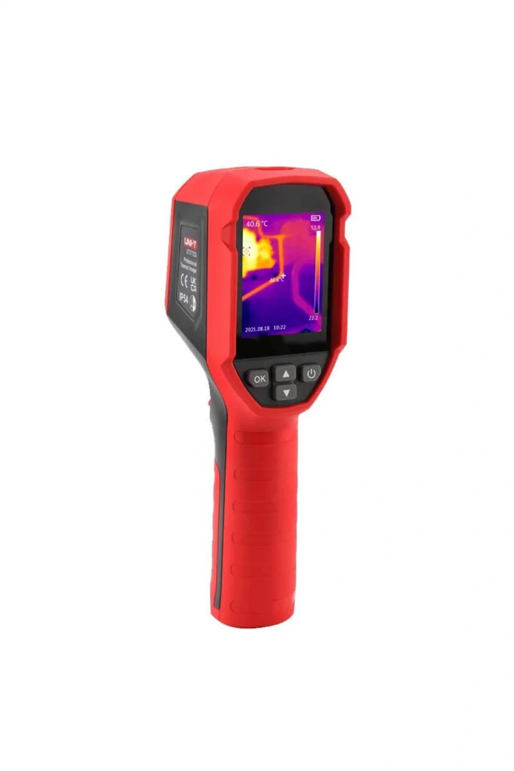 UTi712S, kaliteli bir yapıya sahip uygun maliyetli ve şiddetle tavsiye edilen bir termal kameradır.; Bazı özel özellikler şunları içerir: sıcaklık telafisi (farklı sıcaklık ortamlarında daha doğru okumalar sağlar), lazer işaretçi, daha uzun pil çalışma süresi (8 saatten fazla).; Bu sağlam termal kamera, IP54 korumasına sahiptir ve 2 metreden düşmeye dayanabilir.
