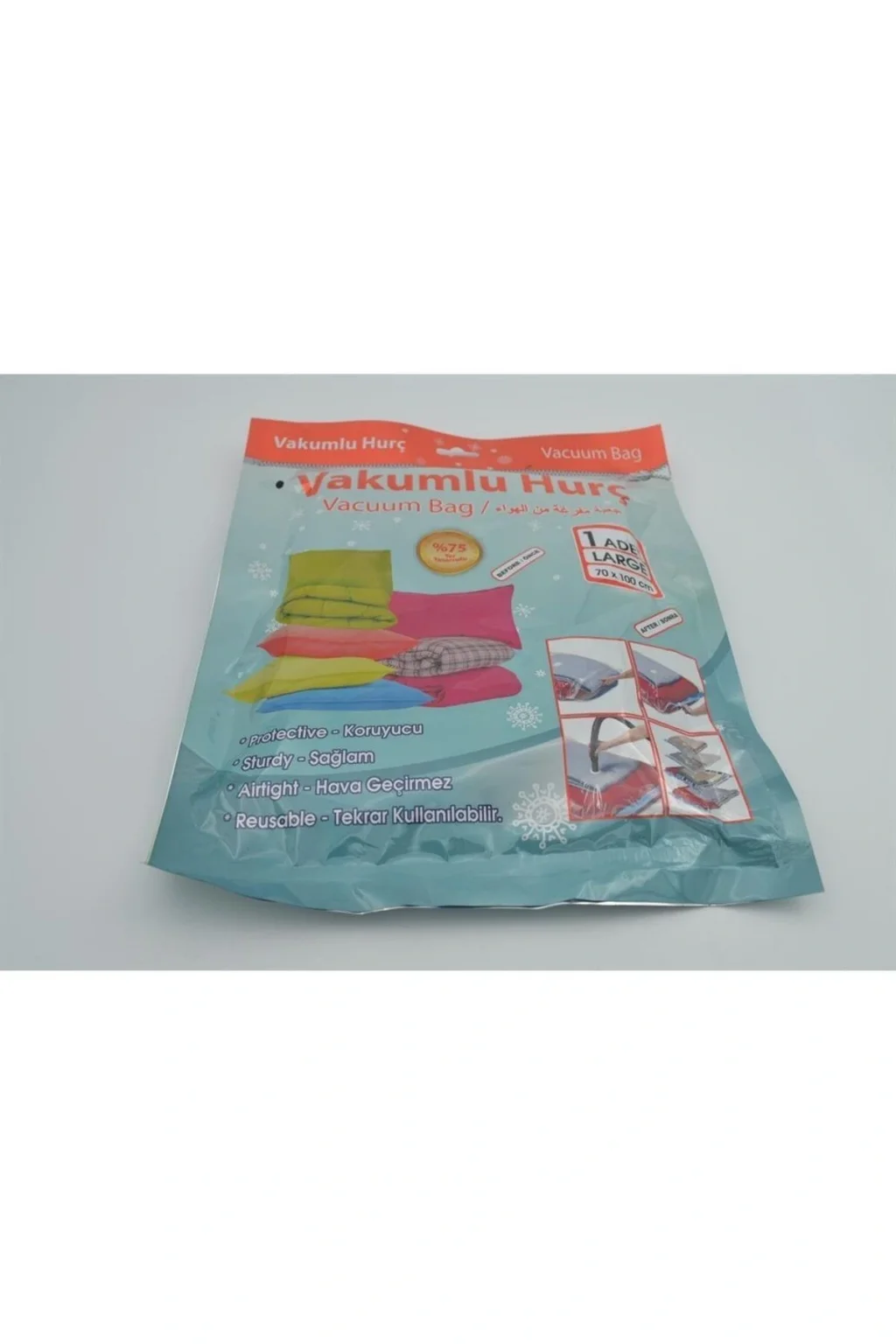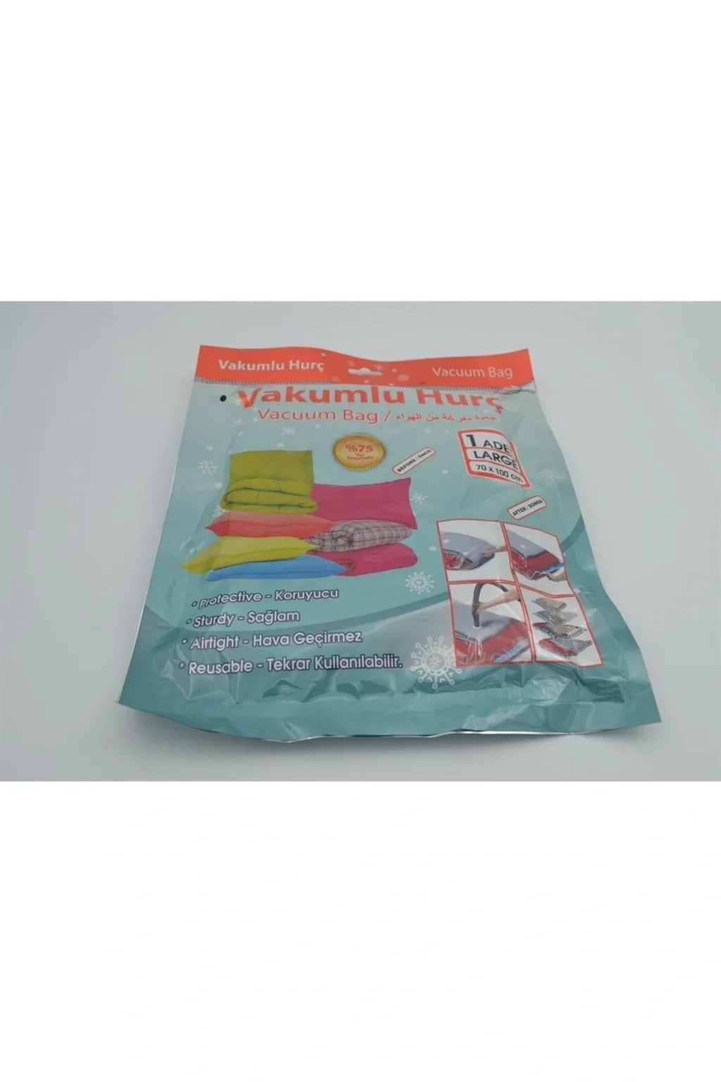 Tek parça halinde sunulan bu hurç, pratik kullanım için idealdir; 70x100 cm boyutlarındaki geniş yapısı sayesinde büyük eşyalarınızı rahatça saklamanızı sağlar; Dayanıklı plastik materyali ile uzun ömürlü kullanım sunar ve kolay temizlenebilir özelliğiyle hijyenik bir saklama imkanı tanır;