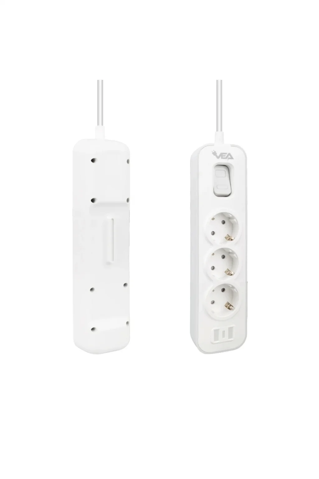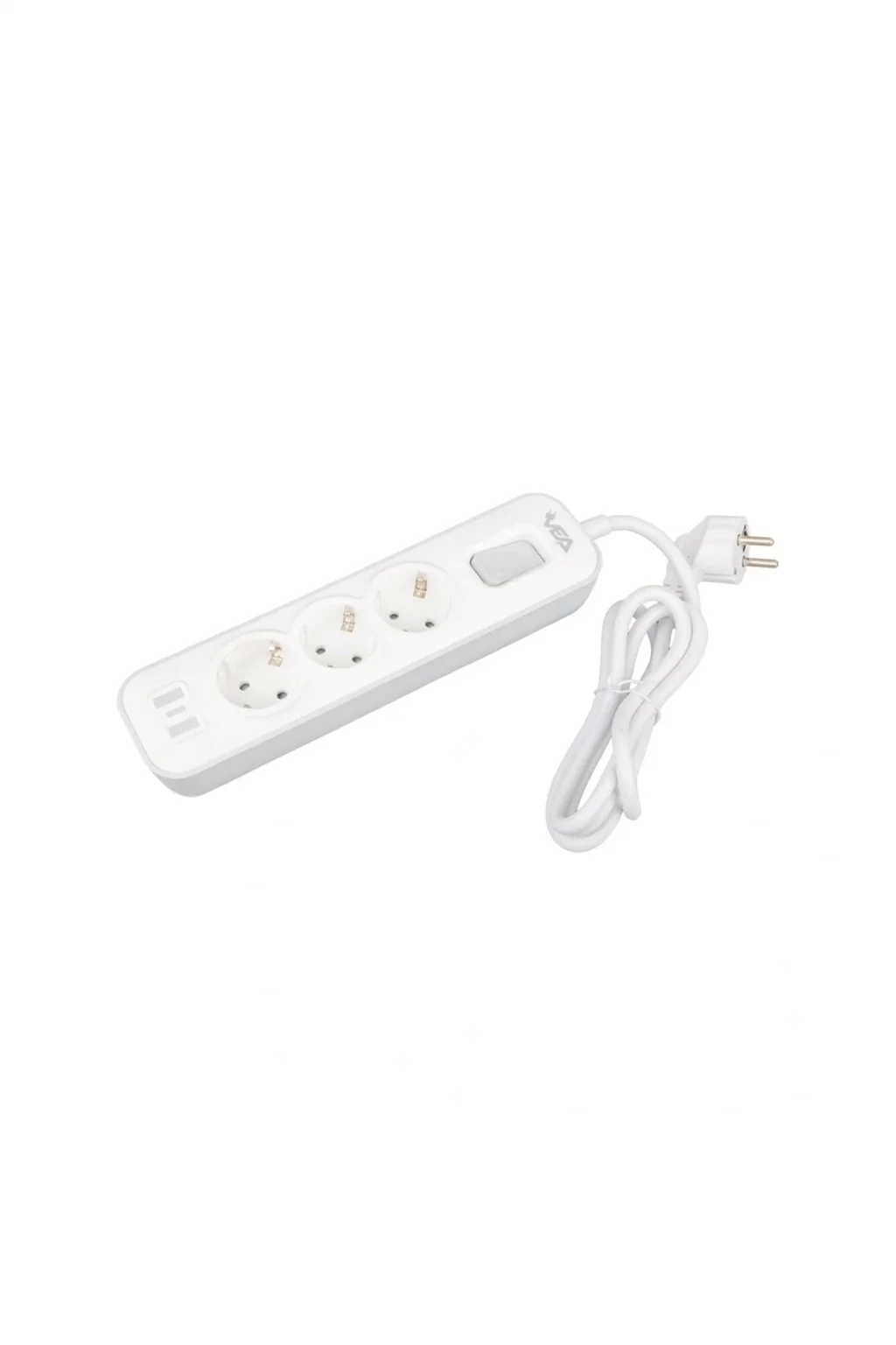 Genel Ürün Beşli enerji koruma prizi +2 usb-Beyaz