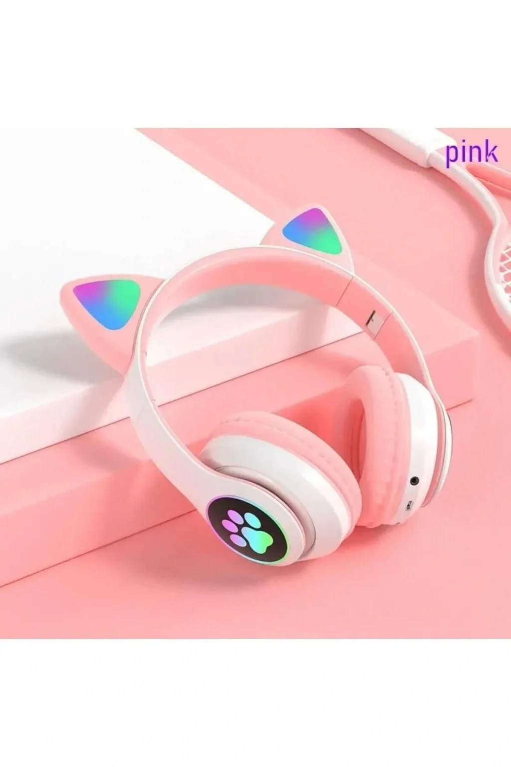 Genel Ürün Vilya Kedi Kulağı Detaylı Bluetooth Kablosuz Kulaklık Çocuk Oyuncu Beyaz Pembe