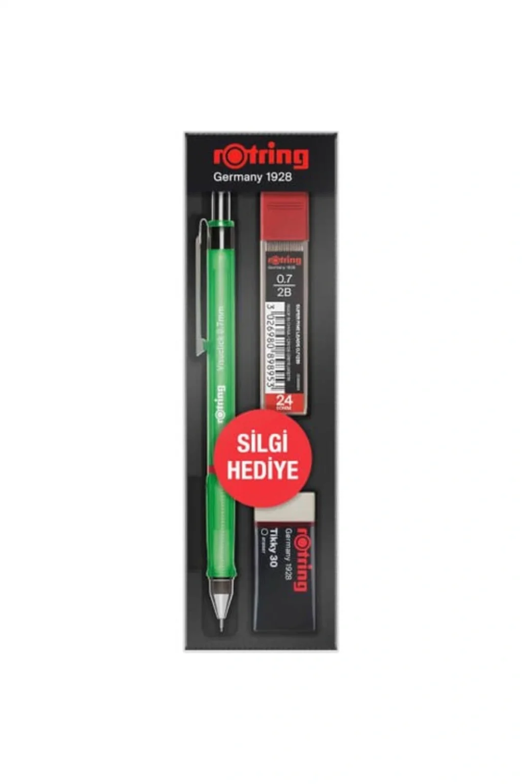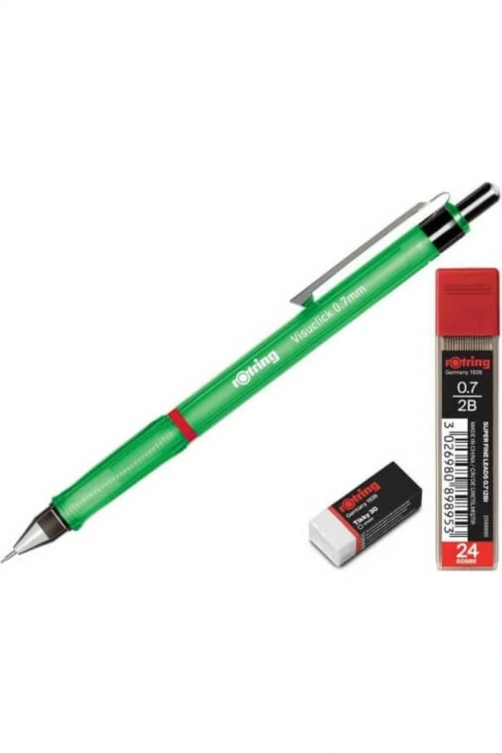 Rotring Visuclick Versatil Kalem Okul Seti Yeşil 0.7 Mm RO-VK07 Rotring Kurşun ve Uçlu Kalemler Kauçuk kavrama bölgesine sahip hafif uçlu kalem, silgi ve uç; Hassas uç çıkışı için rotring'in pirinçten yapılmış mekanizması kullanılmaktadır. Sabit uç manşonu kırılmaları önler ve cetvel ile hassas bir şekilde gerçekleştireceğiniz çizimlerde sayfayı görüşünüzü etkilemez.; Dingin bir şekilde çizim yapabilmeniz için üçgen gövde.; Konfor için yumuşak bir dokunuş sağlayan kauçuk kavrama alanı.; Tüm yazım ve çizim uygulamaları için ideal,; Esnek ve dayanıklı yapısı sayesinde uç kırılma sorununu önleyen yüksek polimer yedek uç; Üstten basmalı kademeli uç çıkarma sistemi.;