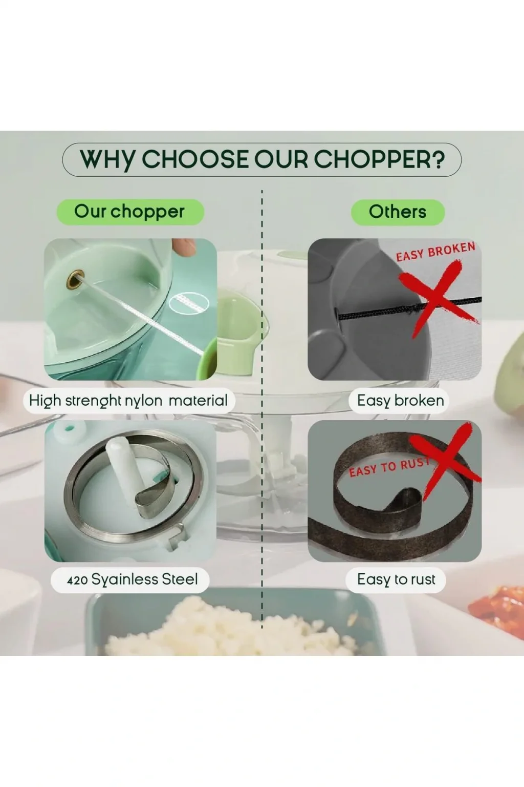 BUĞZ Mini Doğrayıcı Rondo Taşınabilir Mini El Blender Paslanmaz Çelik