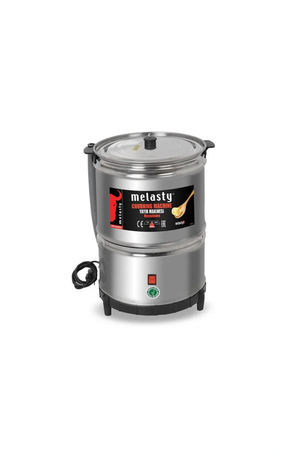 Yayık Makinesi (20 Litre) • Yayık makinesi, ev yapımı tereyağı için mükemmel bir çözümdür ve geleneksel yöntemlere göre daha etkili bir performans sunar. ; • Yenilikçi türbülans sistemi sayesinde daha kısa sürede daha fazla yağ elde edilir. ; • 4 kanatlı tasarımıyla yüksek verimlilik sağlar ve kolay temizlik imkanı sunar. ; • Paslanmaz çelik gövde uzun ömürlüdür ve mutfakta modern bir görünüm sunar. ; • Güçlü motoruyla sessiz ve istikrarlı bir performans sağlar. ; • Ergonomik tasarımı ve kullanıcı dostu kontrol paneliyle kullanımı kolaydır. ; Teknik Özellikler: Kazan Hacmi: 20 litre ; Yayma Süresi: 15 - 20 dakika ; Malzeme Ağırlığı: 4 - 5 kg ; Motor Gücü: 80 W ; Motor Hızı: 1400 rpm ; KULLANIM KILAVUZU • Makinenizi temiz bir zemine yerleştirin ve elektrik prizine bağlayın. ; • Anahtar düğmesiyle makinenin çalışıp çalışmadığını kontrol edin ve gerekirse durdurun. ; • Malzemeyi kazana yerleştirin ve su seviyesini ayarlayın (25°-30°). ; • Kapağı kapatıp makineyi çalıştırın ve belirtilen süre sonunda durdurun. ; • Yağı toplamak için su ekleyin ve üstte biriken yağı ayrıştırarak alın. ; • Yağı yıkayın ve şekil vererek buzdolabında dinlendirin. ; • Kullanımdan sonra makineyi temizleyin ve prizden çekin. ;