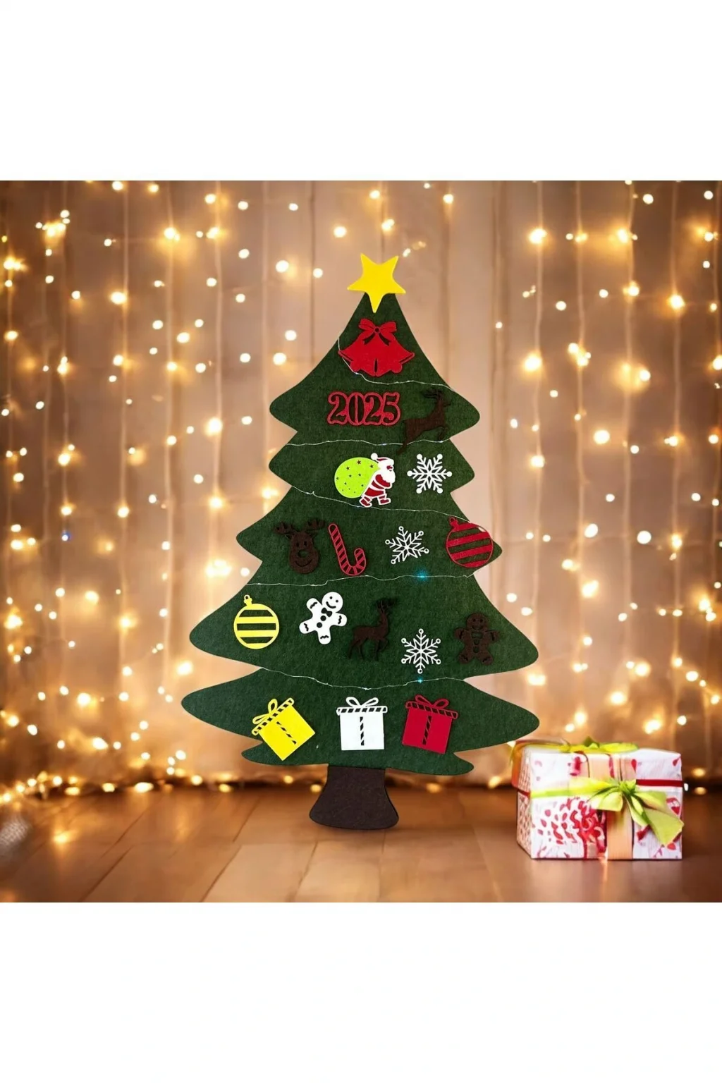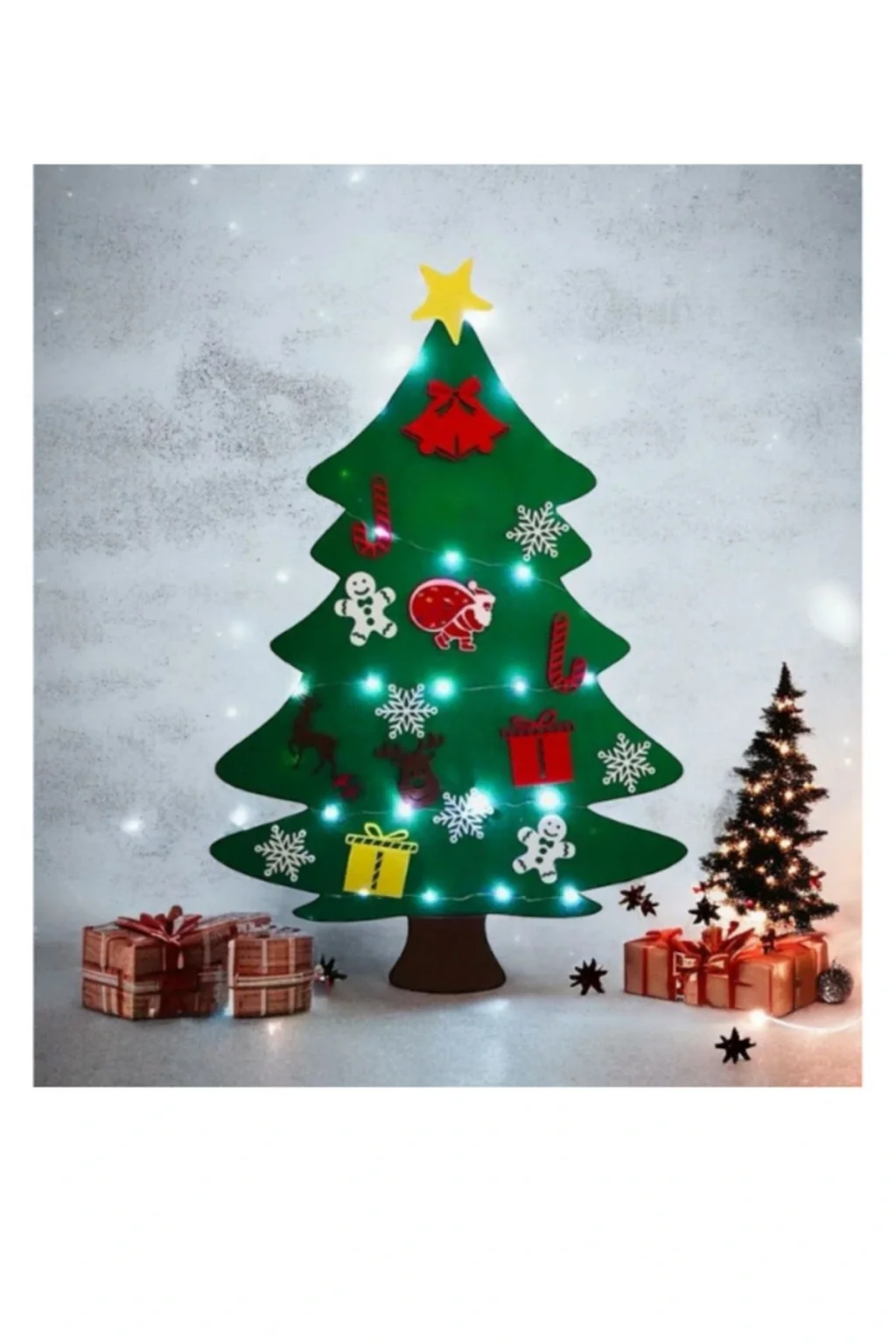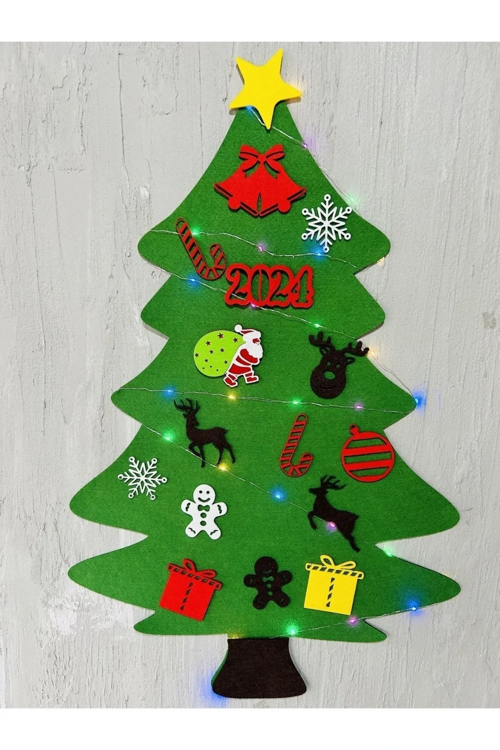 Yılbaşı Ağacı Keçe Ağaç Yeni Yıl Ağacı Noel Ağacı Christmas Tree Led Işıklı Yeniyıl Etkinlik Set Sizler için hazırladığımız ithal 3 mm Keçe 'den yeni yıl (Noel) ağacı ile evlerinizi iş yerlerinizi ,mağaza vitrinlerinizi , Yeni yıla hazırlayabilirsiniz.; Yeni yıla girerken Yeni yıl ağacınızı Ailece istediğiniz gibi tasarlayabilir bu tasarımı eğlenceli bir etkinliğe dönüştürebilirsiniz, çocukların da severek yapacağı el becerilerinin gelişmesini sağlarken odaları için farklı bir aksesuar hazırlayabilirler.; Yeni yıl ağacınızı özellikler yerden tasarruf ederek duvarlarınızı süsleyebilir, isterseniz kapı süsü veya cam/ viitrin süslemelerinde kullanabilirsiniz, Keçe yeni yıl ağacımızın ölçüleri Boy 100 cm En *65 cm 18 adet karışık keçe süsleri noel baba süsü dahil olmak üzere ürün süslerimiz 3 mm ithal keçeden üretilmektedir.; HEDİYE olarak LED IŞIK ve özel kutu ambalajı ile kargo yapılır.; süsler ağaca ,ağacı zemin üzerine sabitlemek için cırt bant kullanılacaktır.; (YENİ YIL SET) YERLİ ÜRETİM.; Yılbaşı ruhunu evinize taşıyan bu yeşil renkli Noel ağacı, 90 cm boyuyla ideal bir dekorasyon seçeneği sunar.; - Canlı yeşil rengiyle dikkat çeken bu yılbaşı ağacı, mekanınıza sıcak ve davetkar bir atmosfer katar.; - LED ışıkları sayesinde enerji tasarrufu sağlar ve uzun süreli kullanım için idealdir.; - Yılbaşı etkinliklerinizde şenlikli bir ambiyans yaratmak için mükemmel bir seçimdir