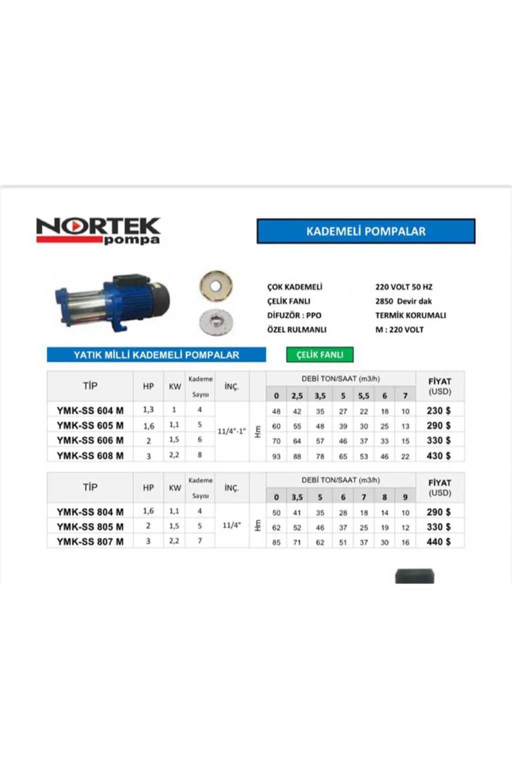 Kullanım Alanı Bu tip pompalar 6 mt emişli olup , kuyudan veya depodan su temininde kullanılmaktadır. ; Basınçlarının yüksek olması sebebi ile çok sık hidrofor olarak binalara su teminin de kullanılmaktadır. ; Çalışma Koşulları 1- Maksimum su sıcaklığı : +40? 2-Maksimum ortam sıcaklığı?+40? Çelik Fanlı Modeldir.;